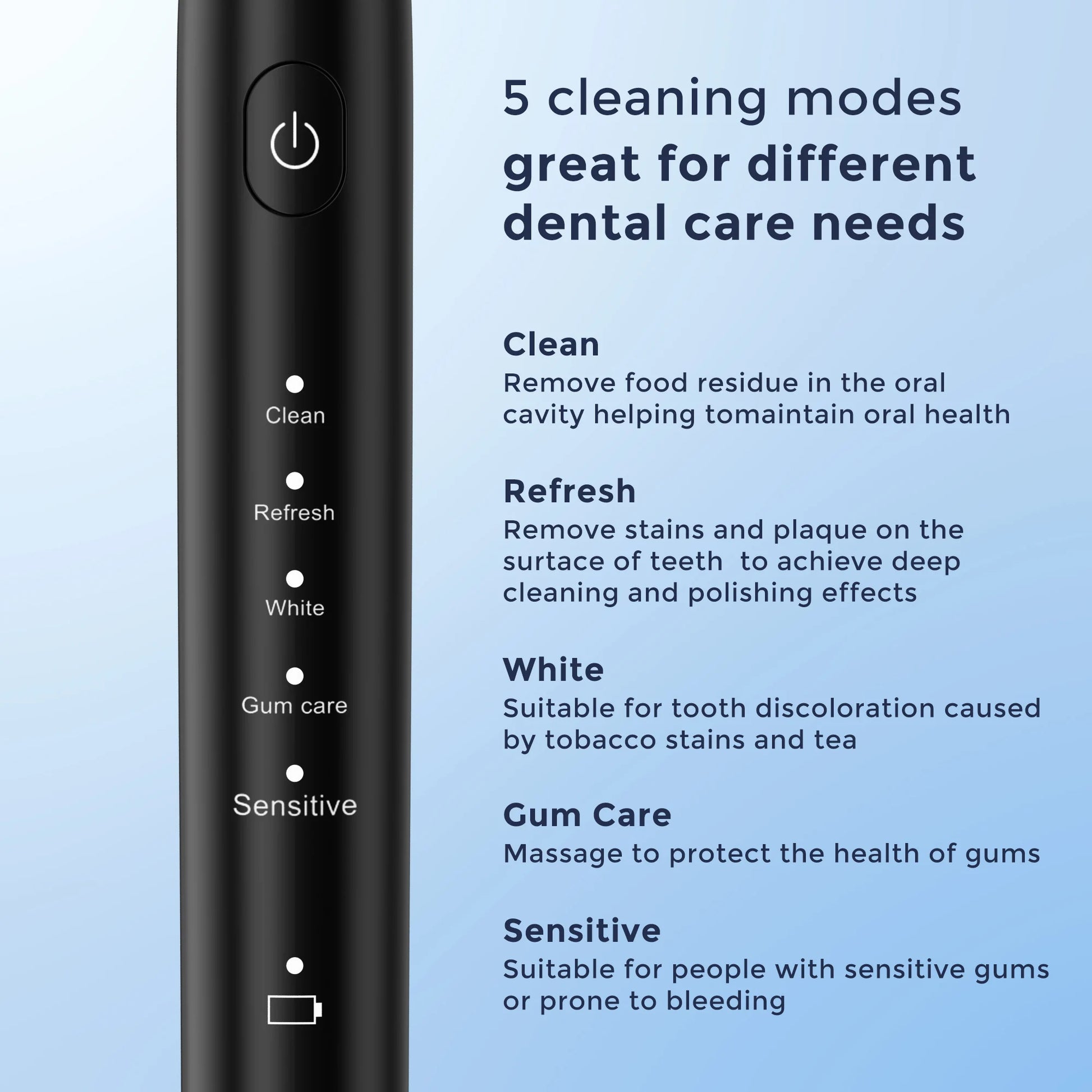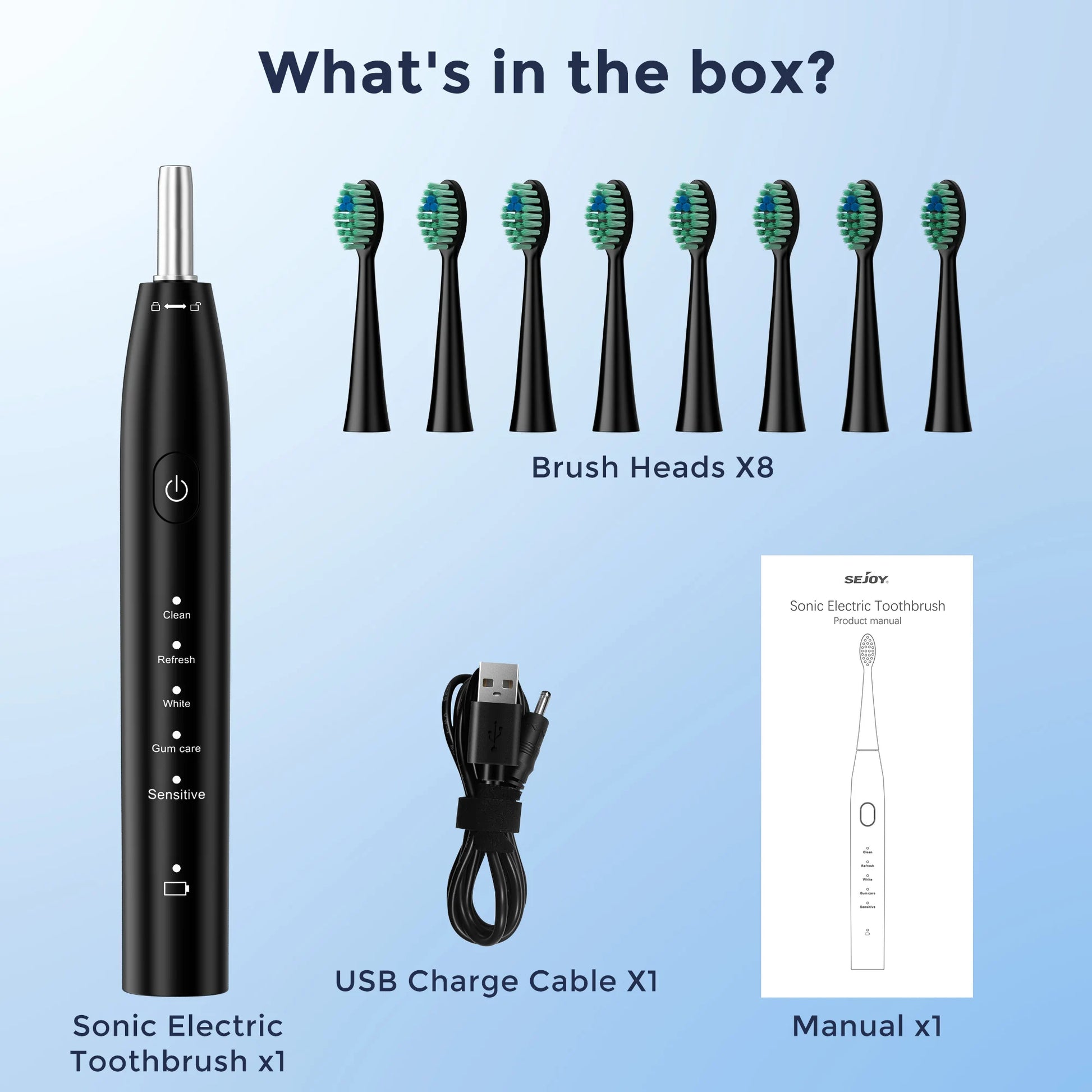 Sejoy Electric Toothbrush for Adults Rechargeable DY-156 Sonic Tooth Brushes 5 Modes IPX7 Waterproof with 8 Replacement Heads