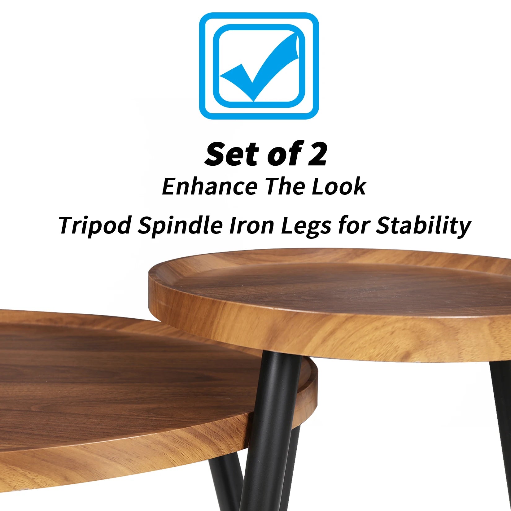 Set of 2 Mid-Century Coffee Table, Solid Wood, Drop Shape, Nesting Tables, Accent Ottoman Table, Living Room Office