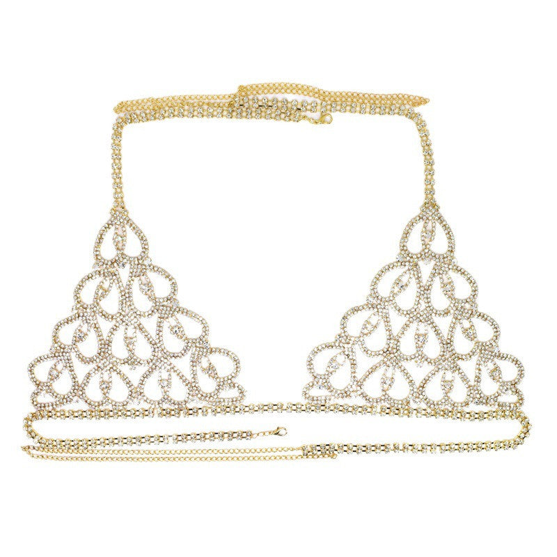 Sexy Bikini With Heart-shaped Rhinestone Claw Chain On Body Chain