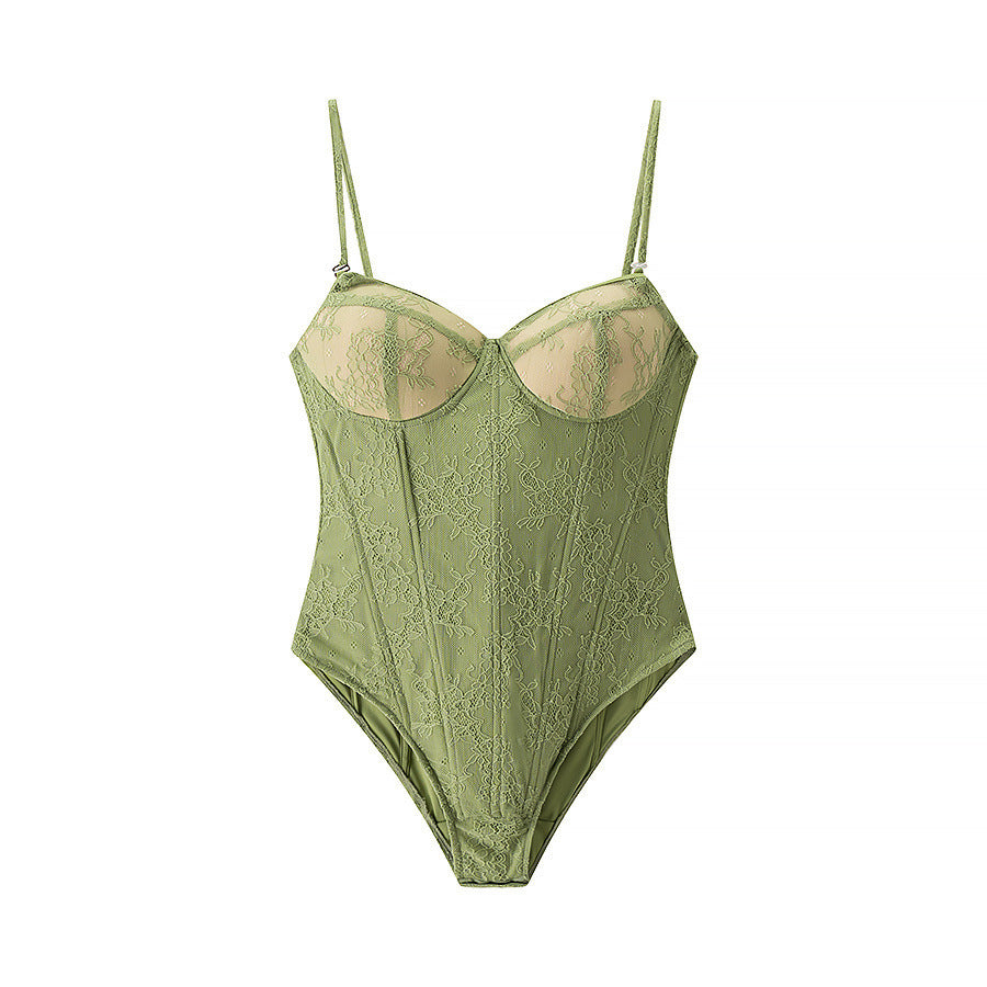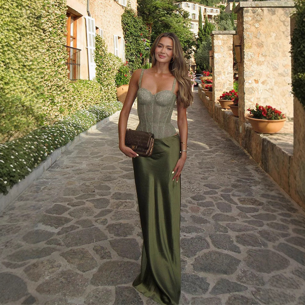 Sexy Lace Sling Corset Satin Mid-length Dress Set