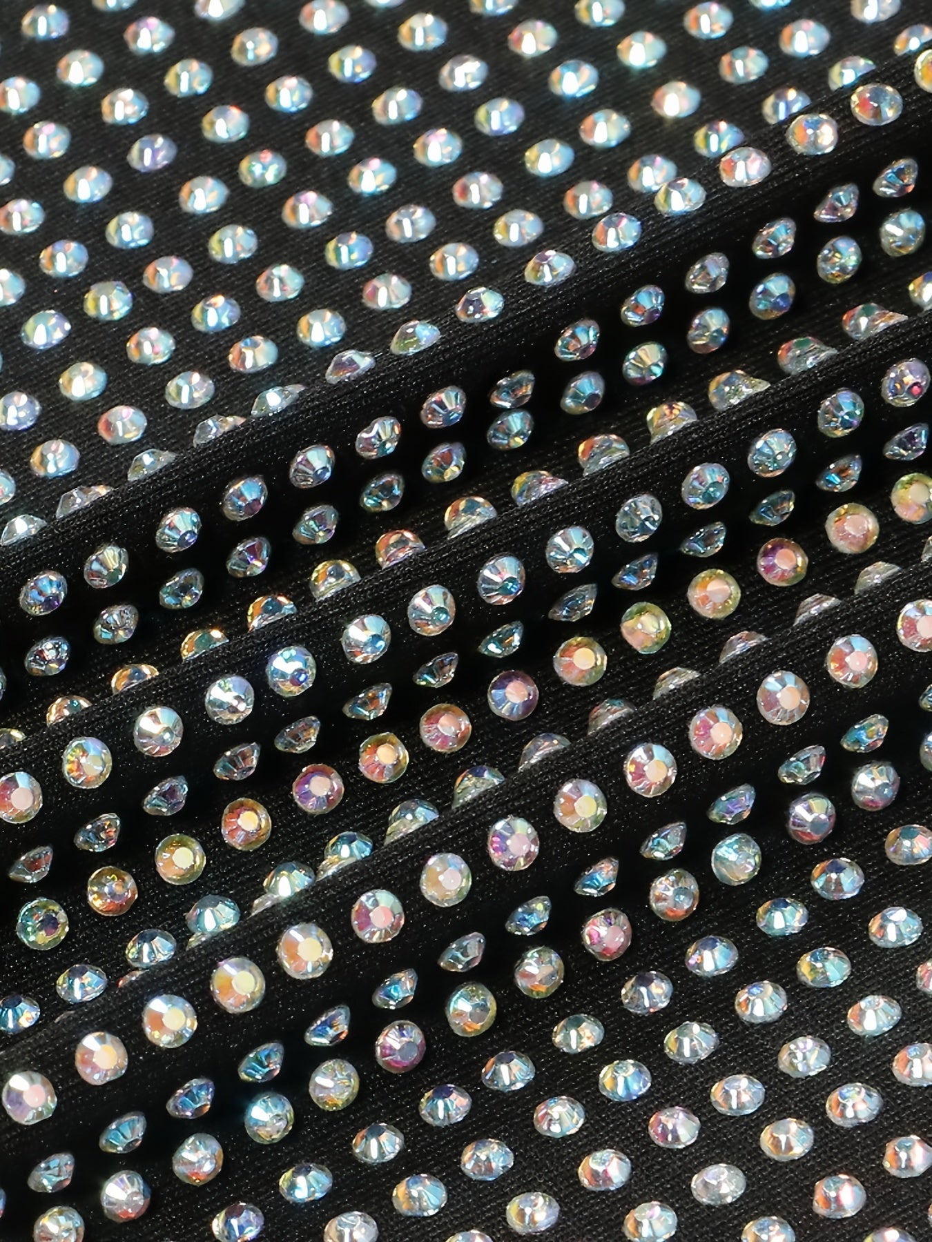 [Sexy Rhinestone Mini Dress] Sexy Rhinestone-Embellished Women's Two-Piece Mini Dress | Deep V-Neck, Stretchy High-Waisted Clubwear with Adjustable Spaghetti Straps, Glittery Sequin Detailing for Nightclub & Party Outfits, Su