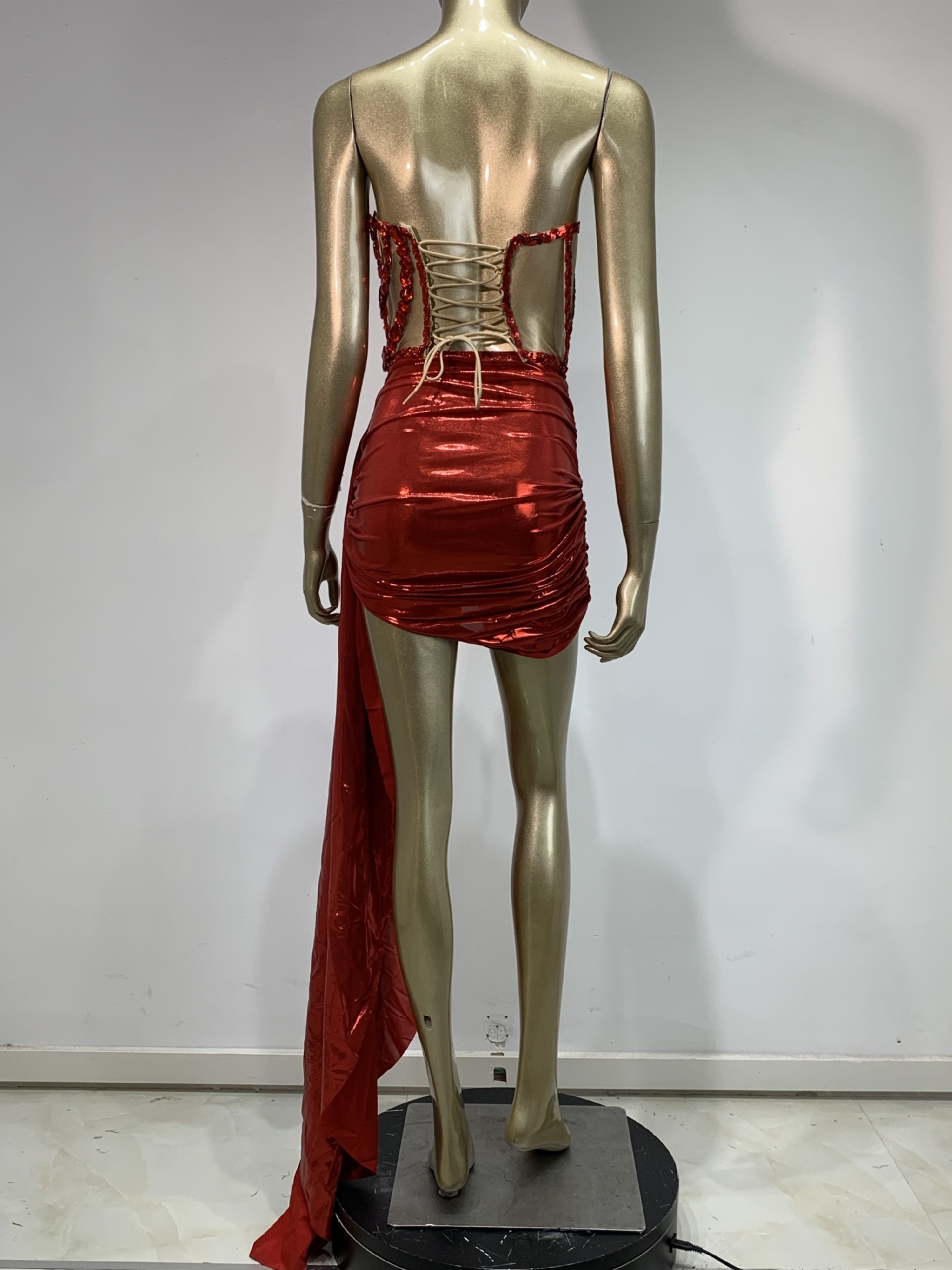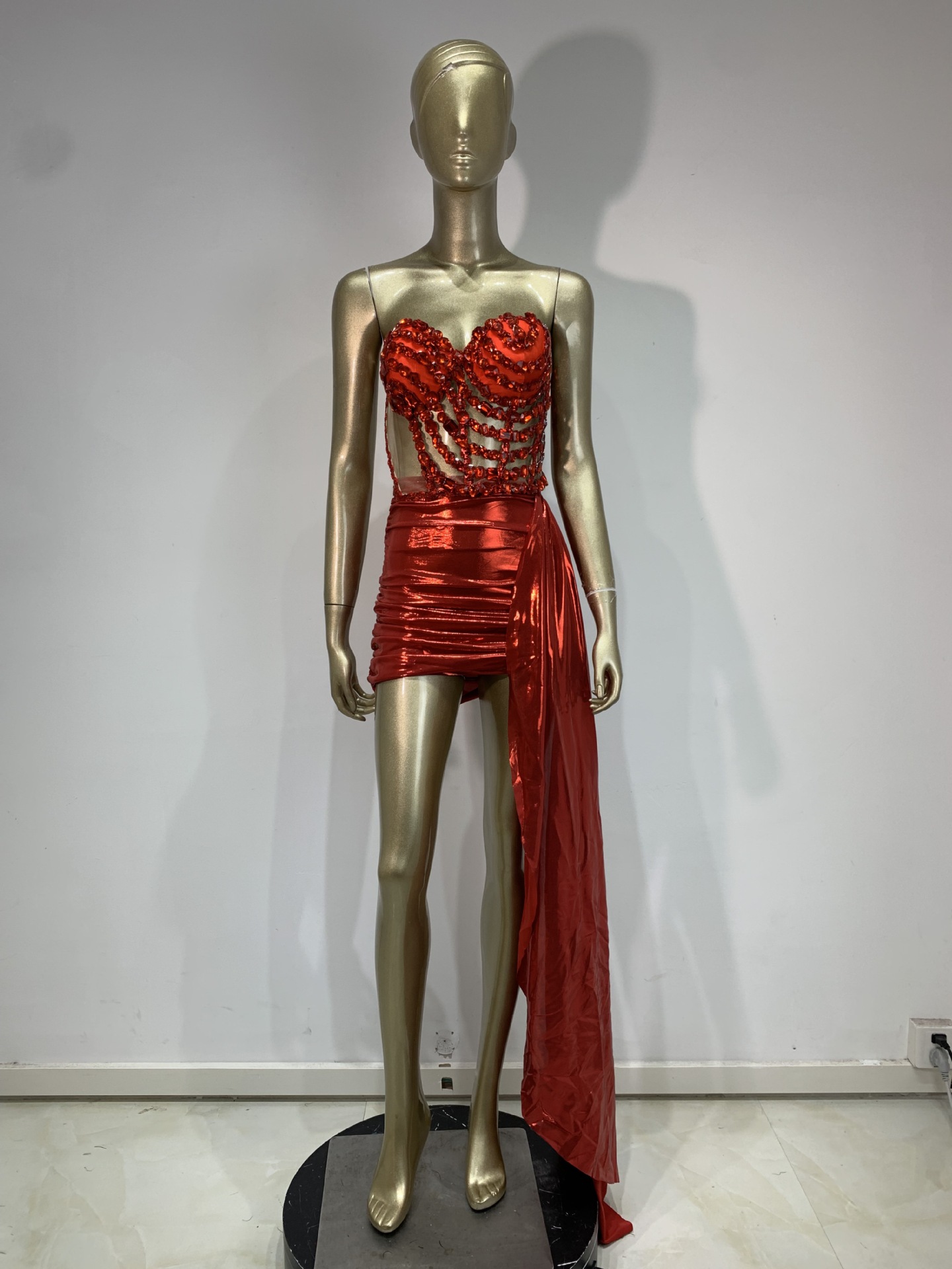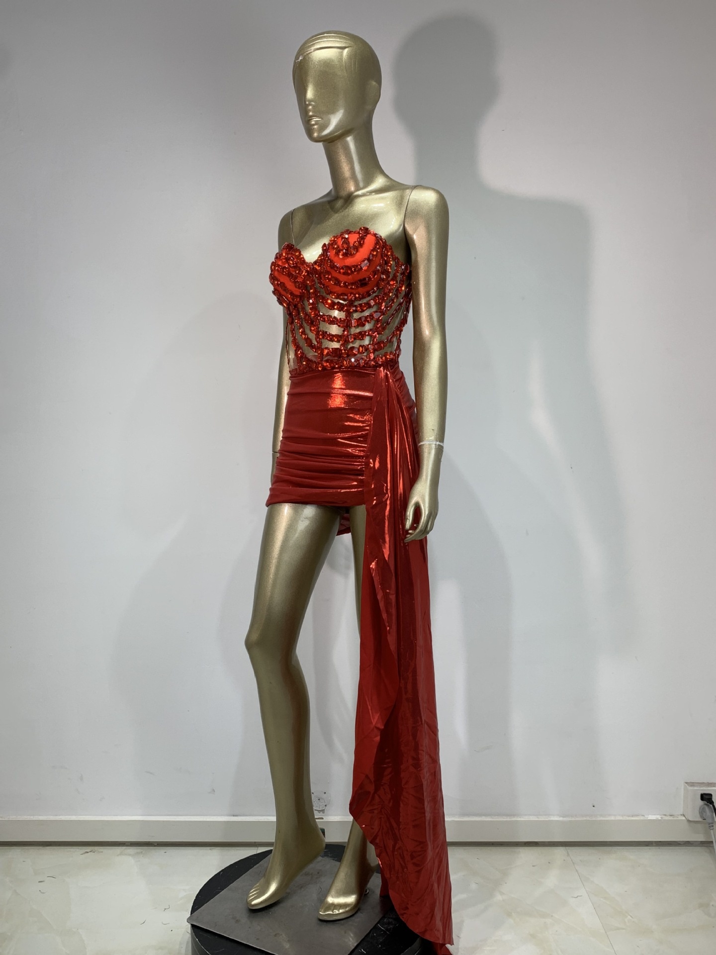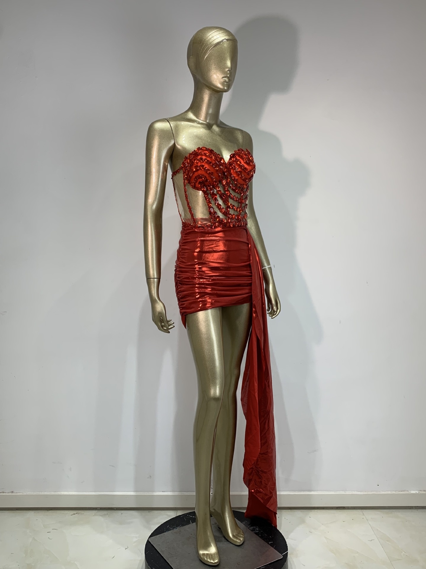 Sexy Skirt Suit Hollow Mesh See-through Banquet Company Party Stage Costume