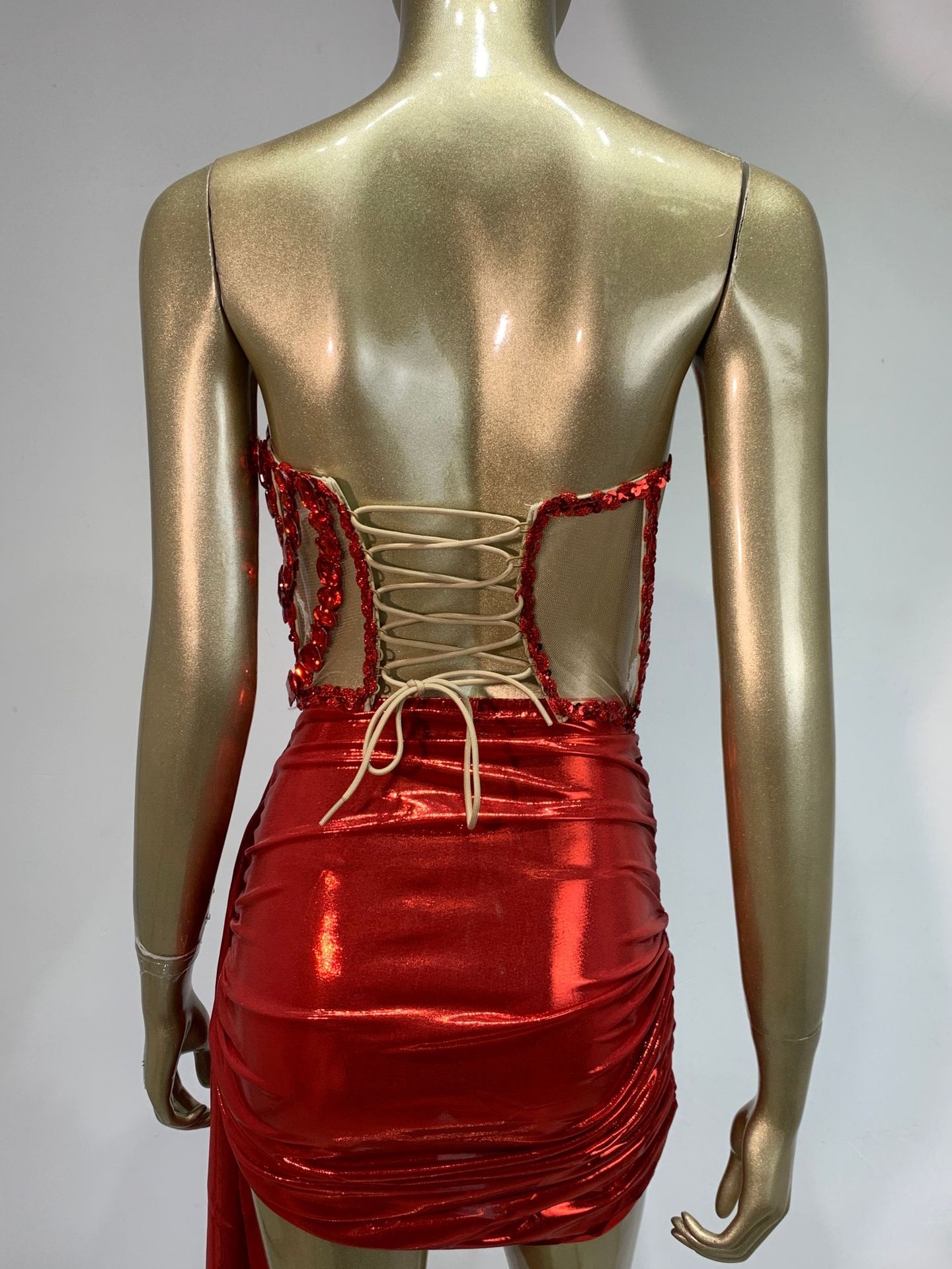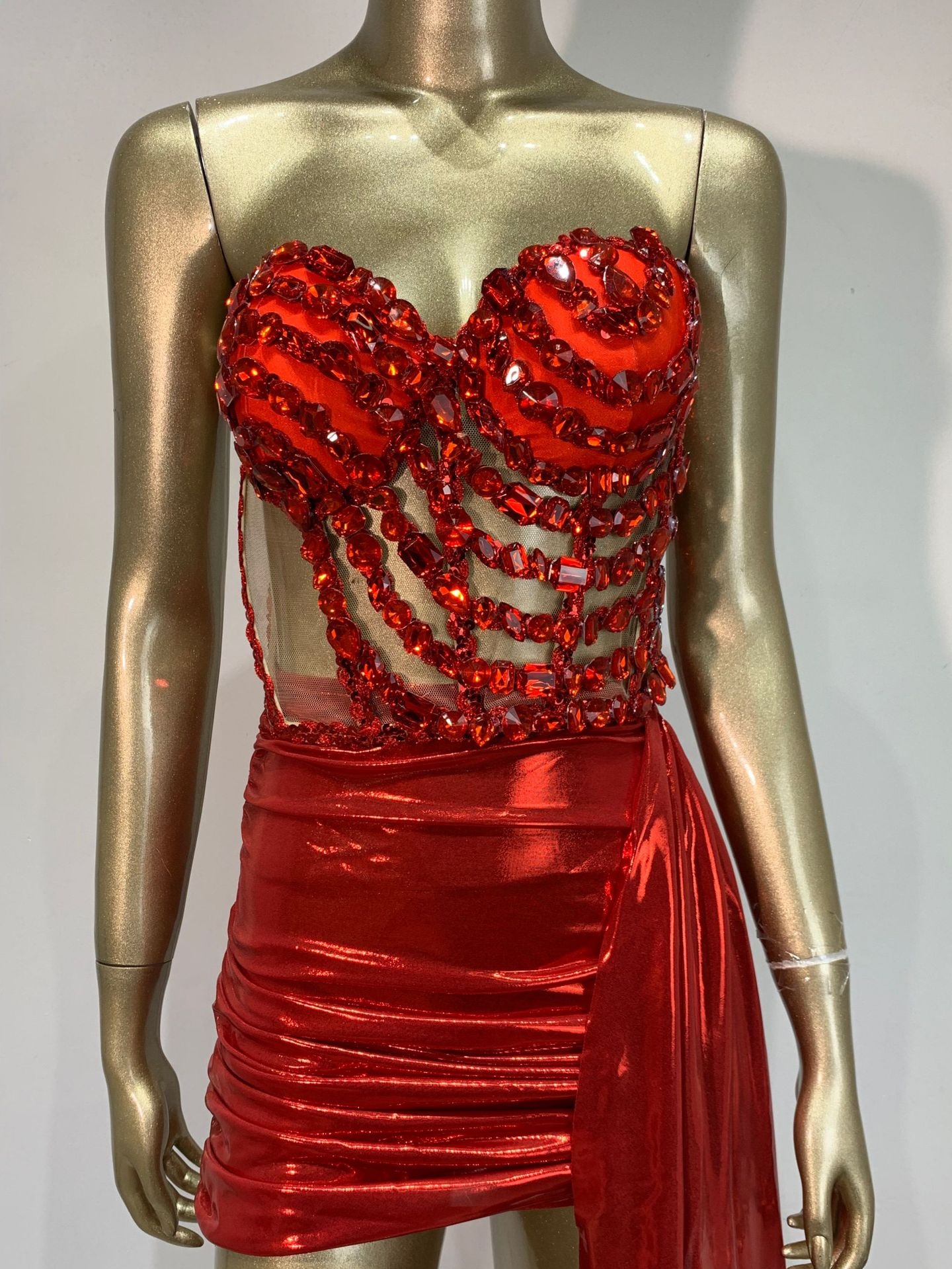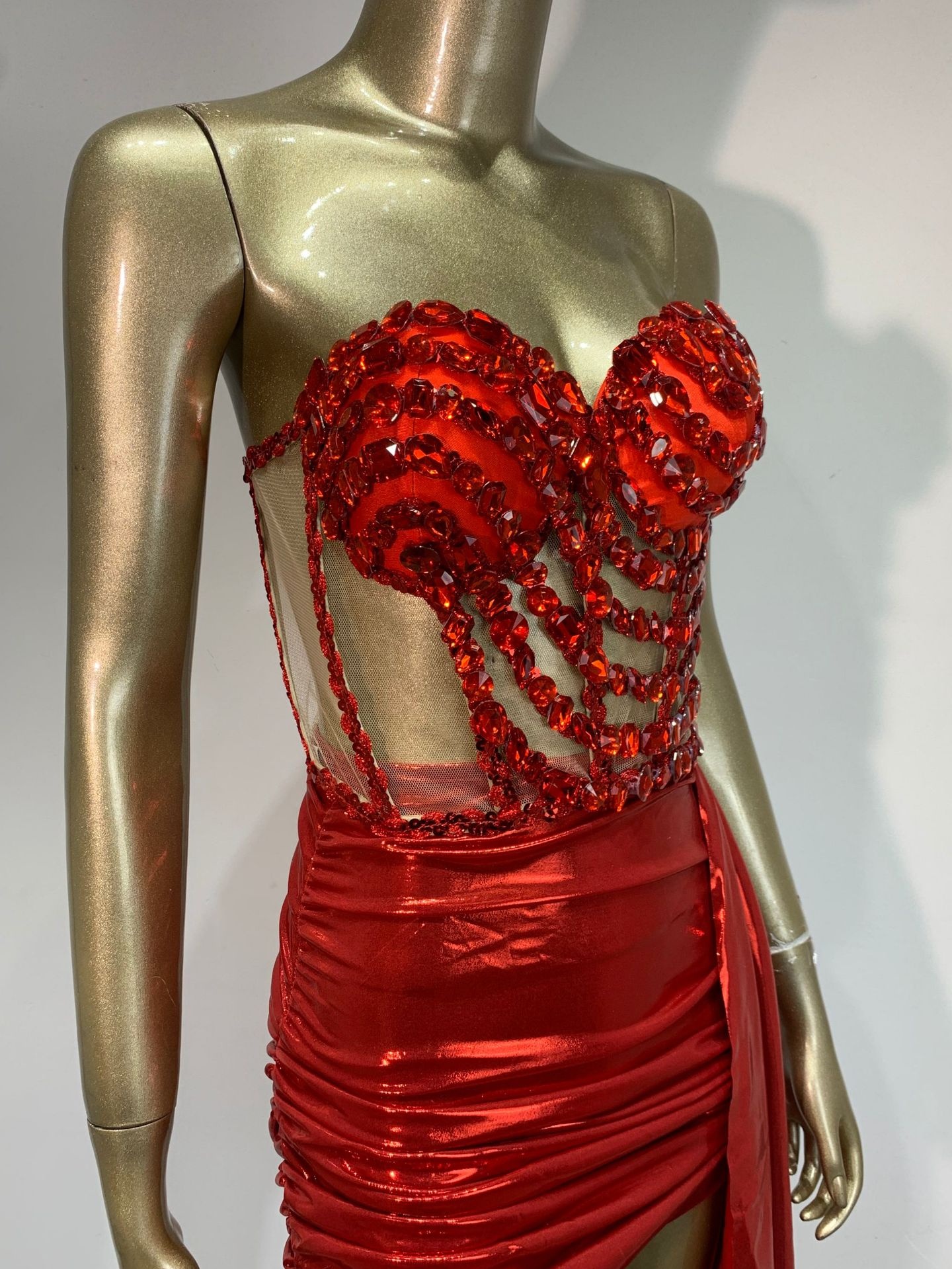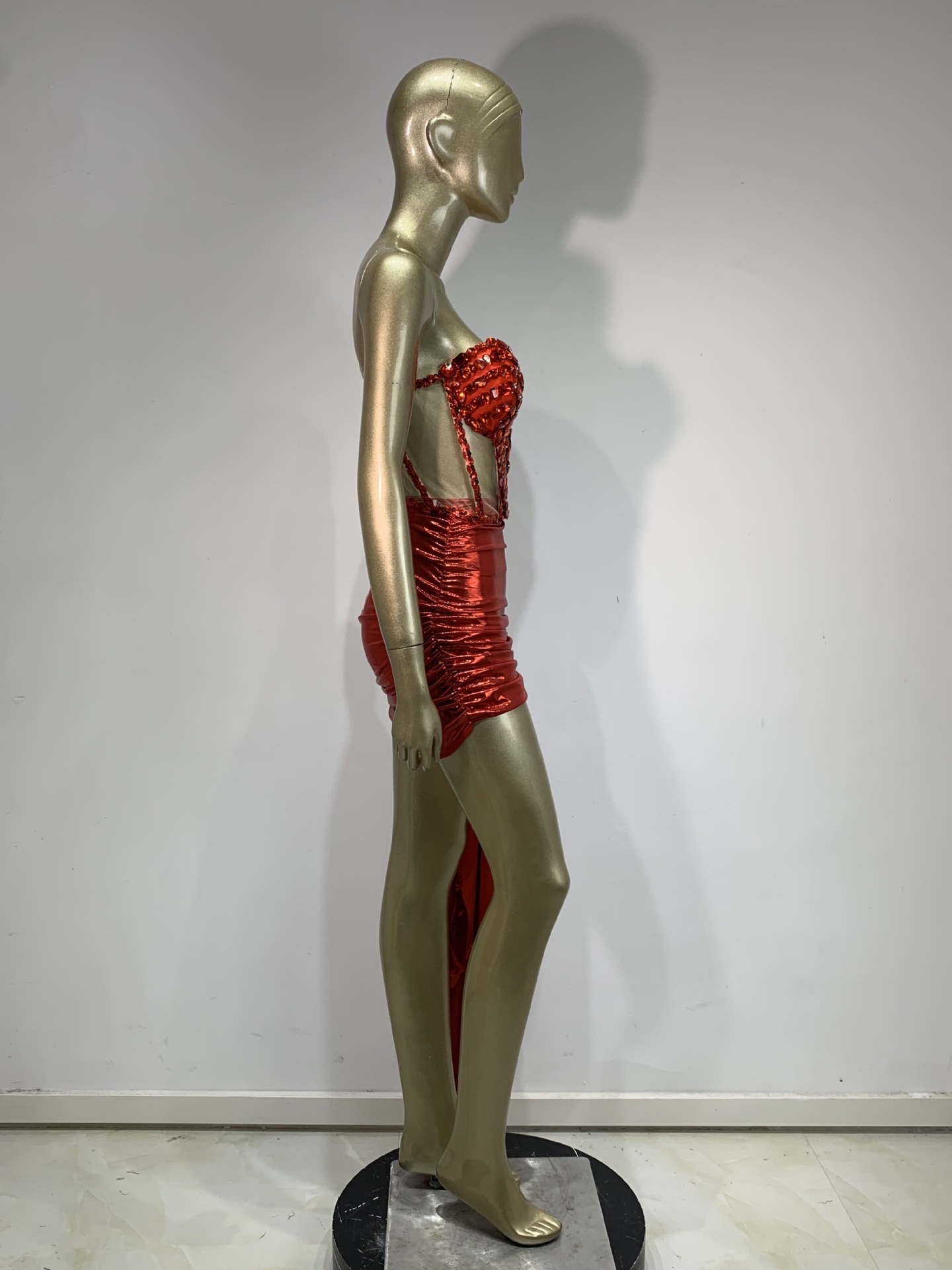 Sexy Skirt Suit Hollow Mesh See-through Banquet Company Party Stage Costume