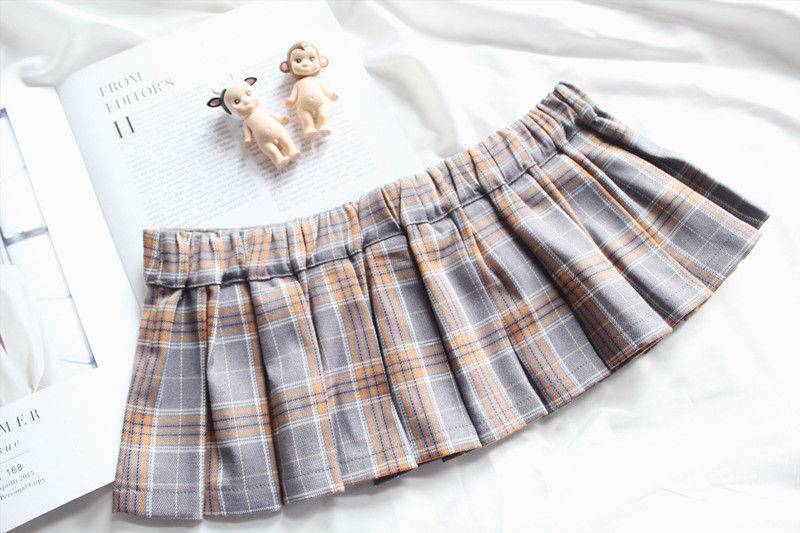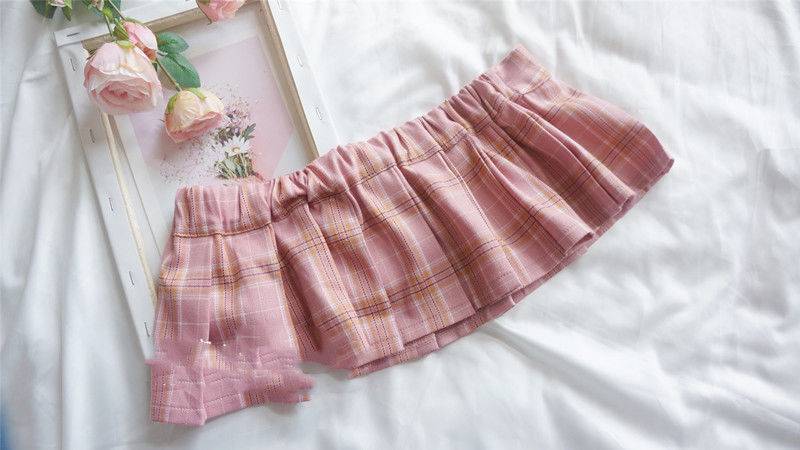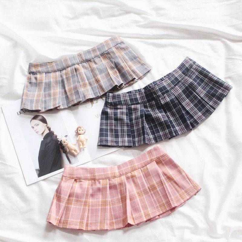 Color: pink plaid mini skirt, yellow plaid mini skirt, blue plaid mini skirt, red plaid mini skirt, green plaid mini skirt, black mini skirt, wine red mini skirt, pink mini skirt