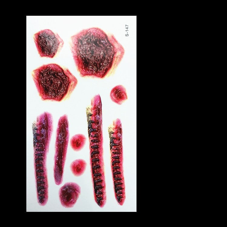Realistic Fake Wound Tattoo Stickers - Halloween Special Effects Makeup - Waterproof Scar Temporary Tattoos