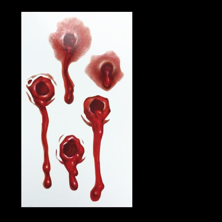 Our fake wound tattoos are dermatologically tested, cruelty-free, and safe for ages 6+. Not recommended for sensitive skin areas or open wounds. Patch test recommended for first-time users.