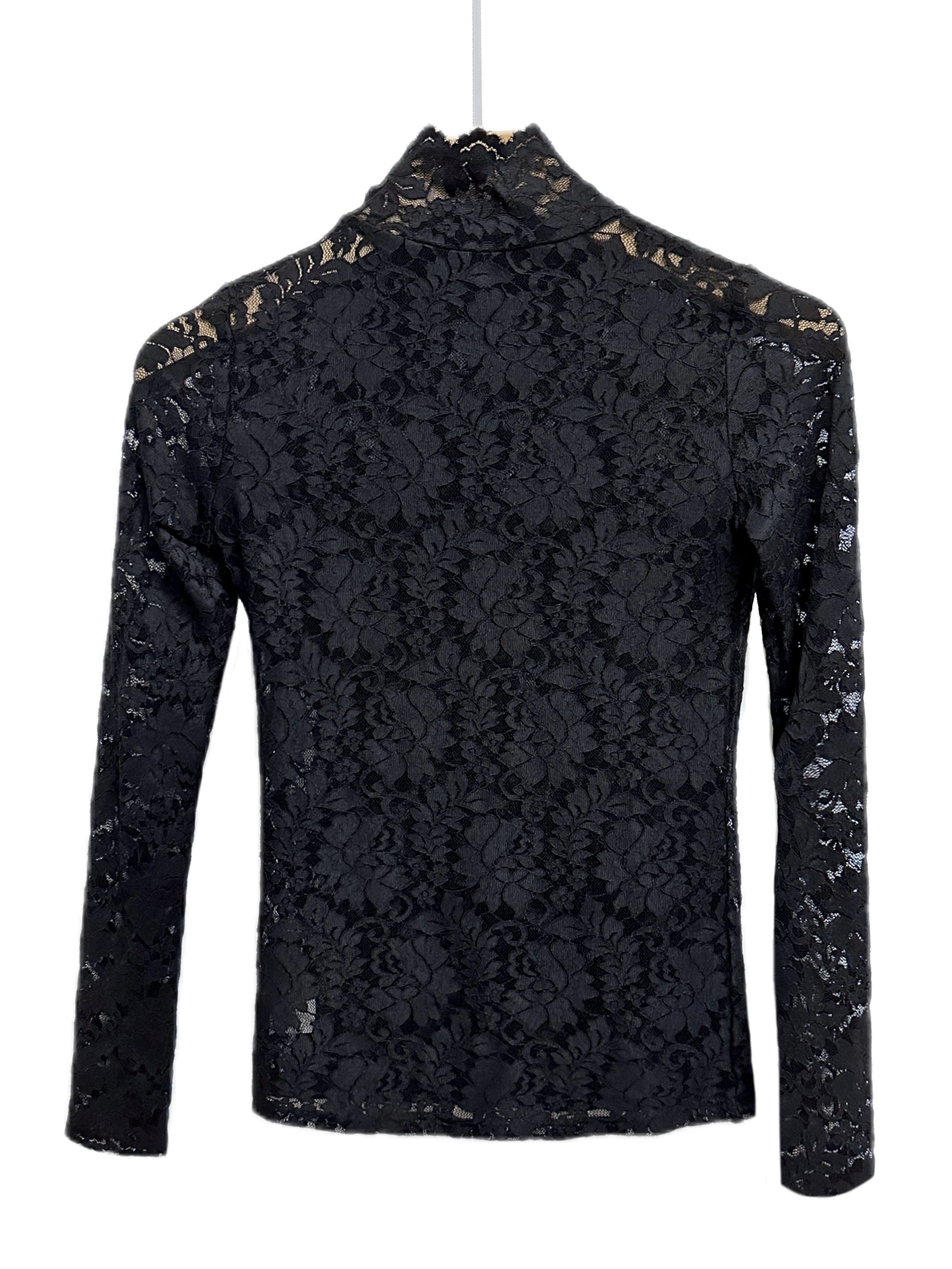 Slim Sexy Long Sleeve Lace Mock Neck Top - Women's Spring & Fall Clothing
