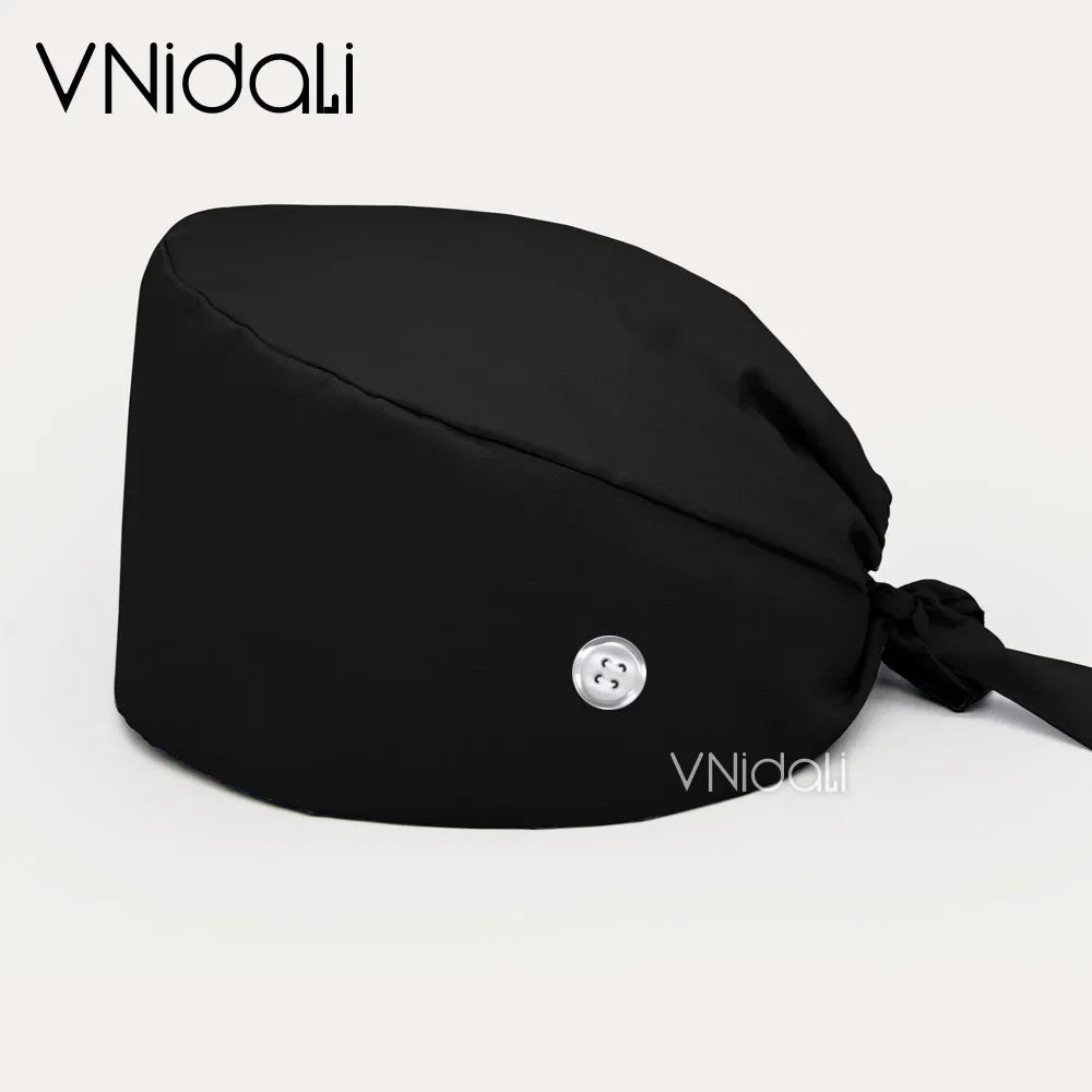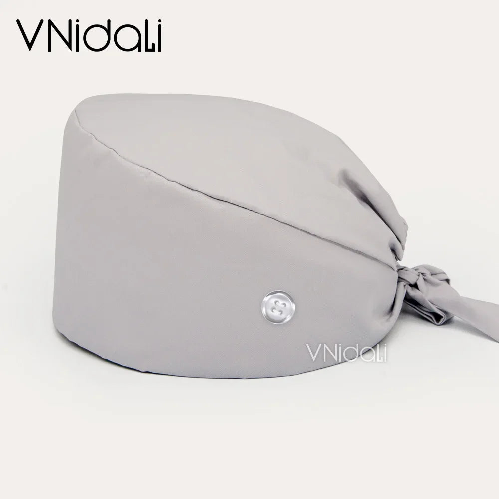 Solid color scrub cap with button pet grooming working Caps surgical cap Lab work hat womens Scrub hats nurse accessories