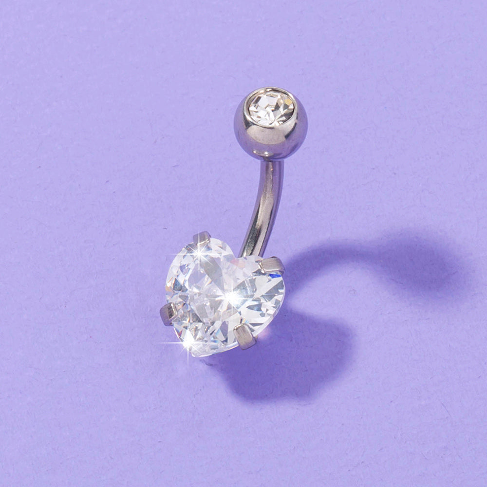 Stainless Steel Heart-shaped Zircon Navel Pin Human Body Piercing Jewelry Woman