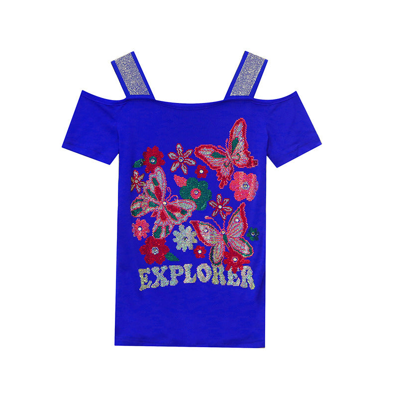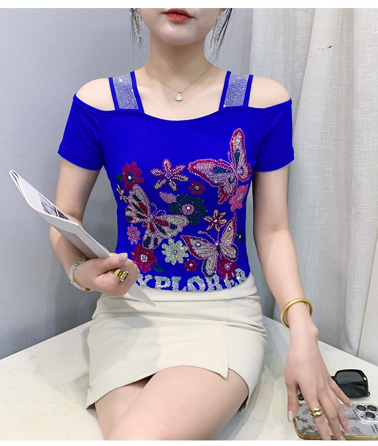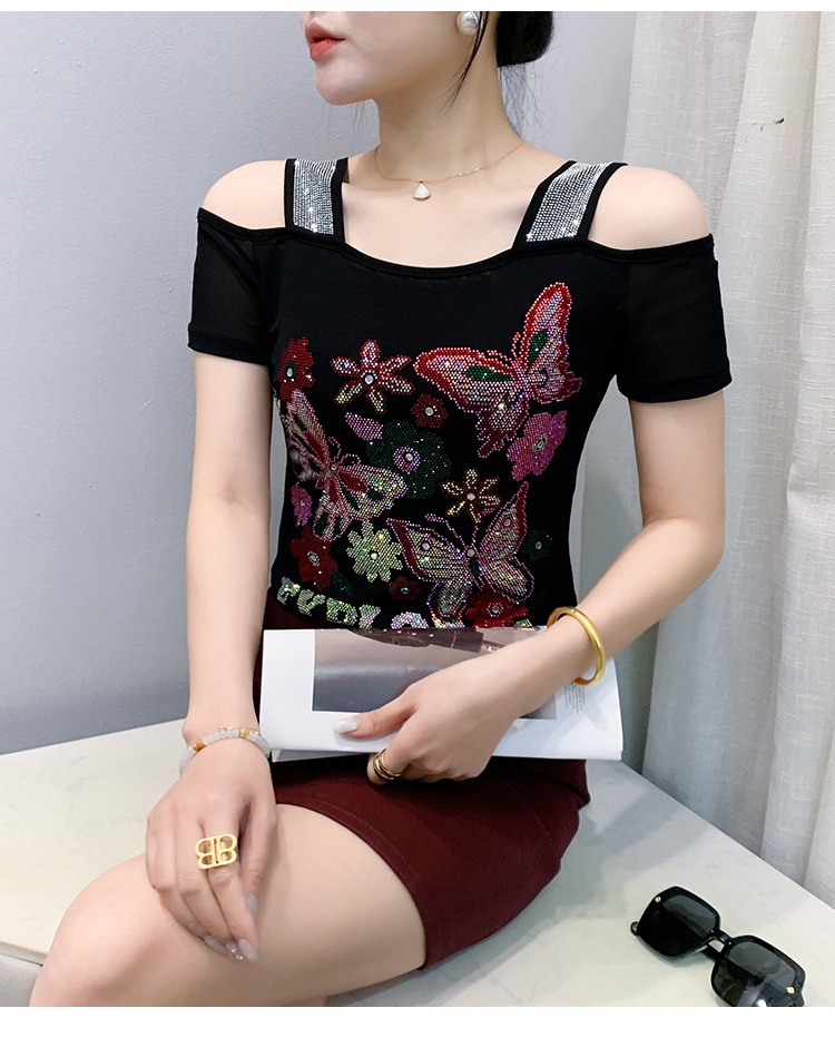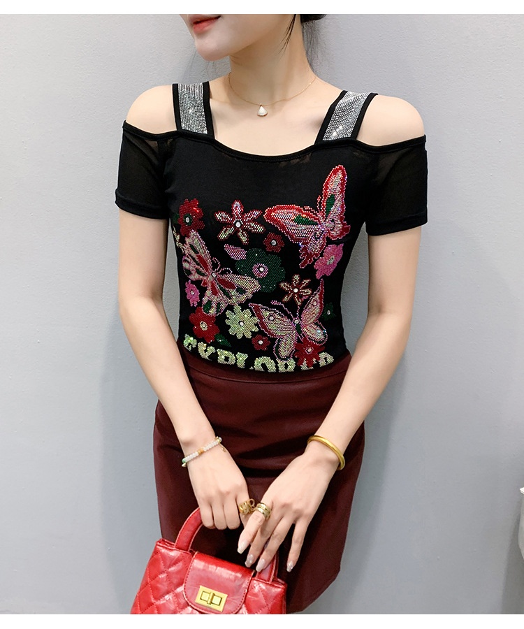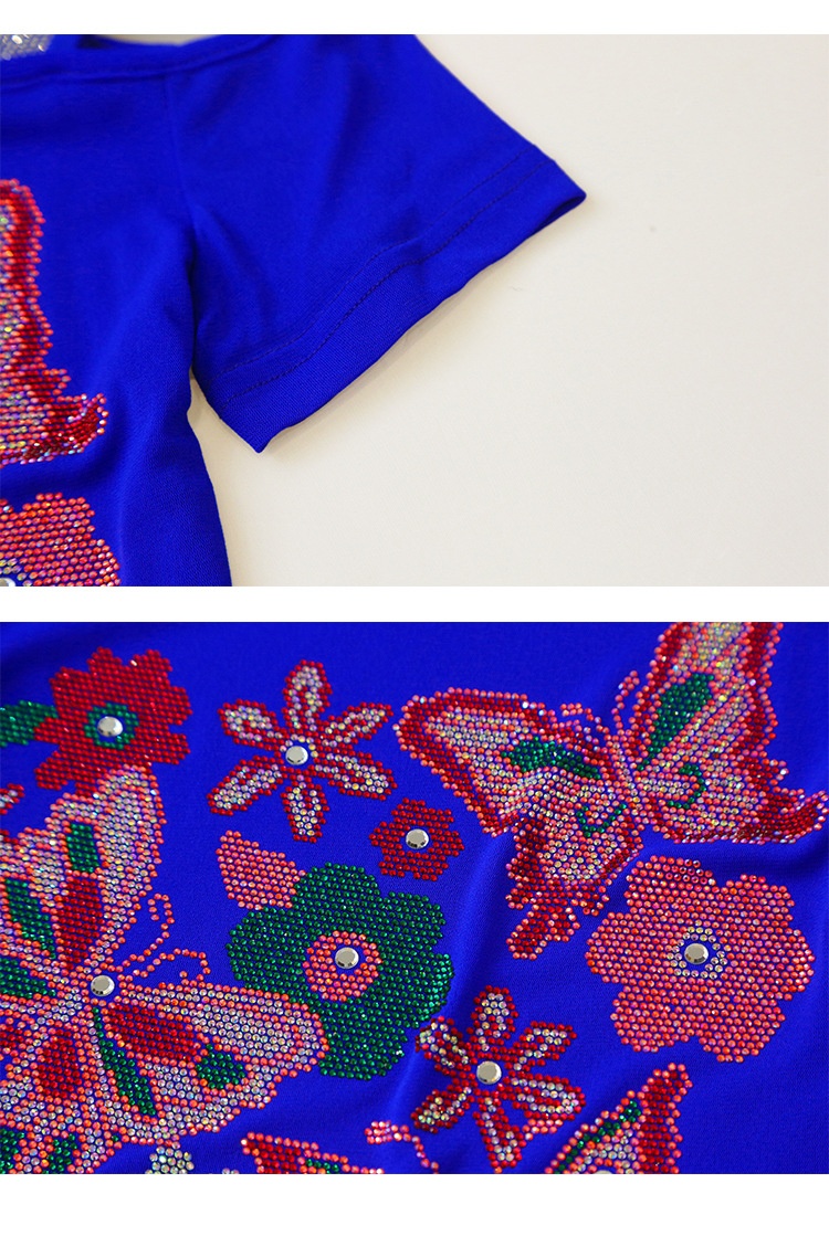 Summer New Exquisite Rhinestone Double Layer Ice Silk Net Yarn Short Sleeve