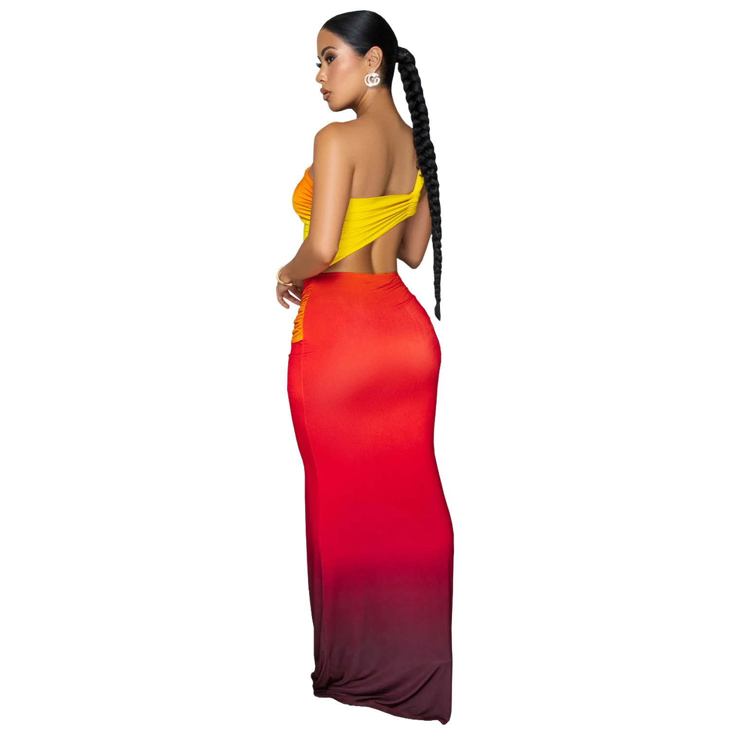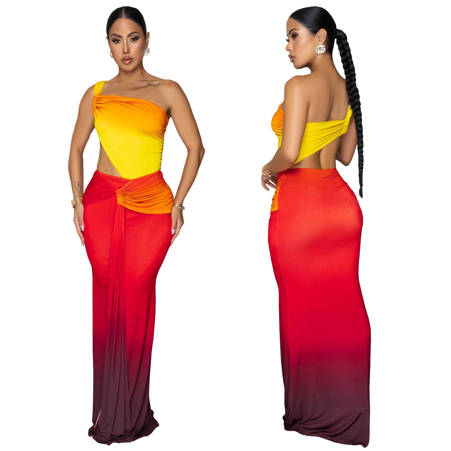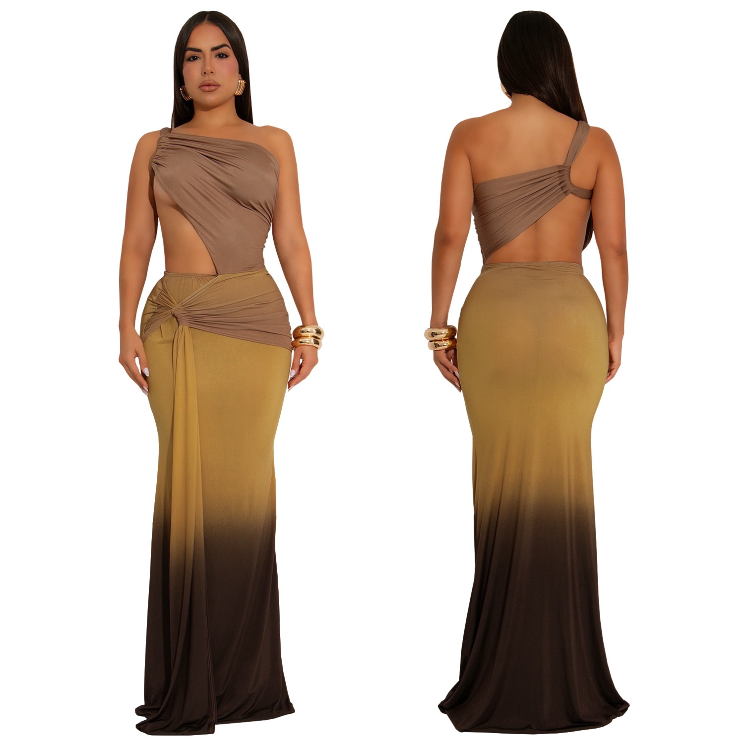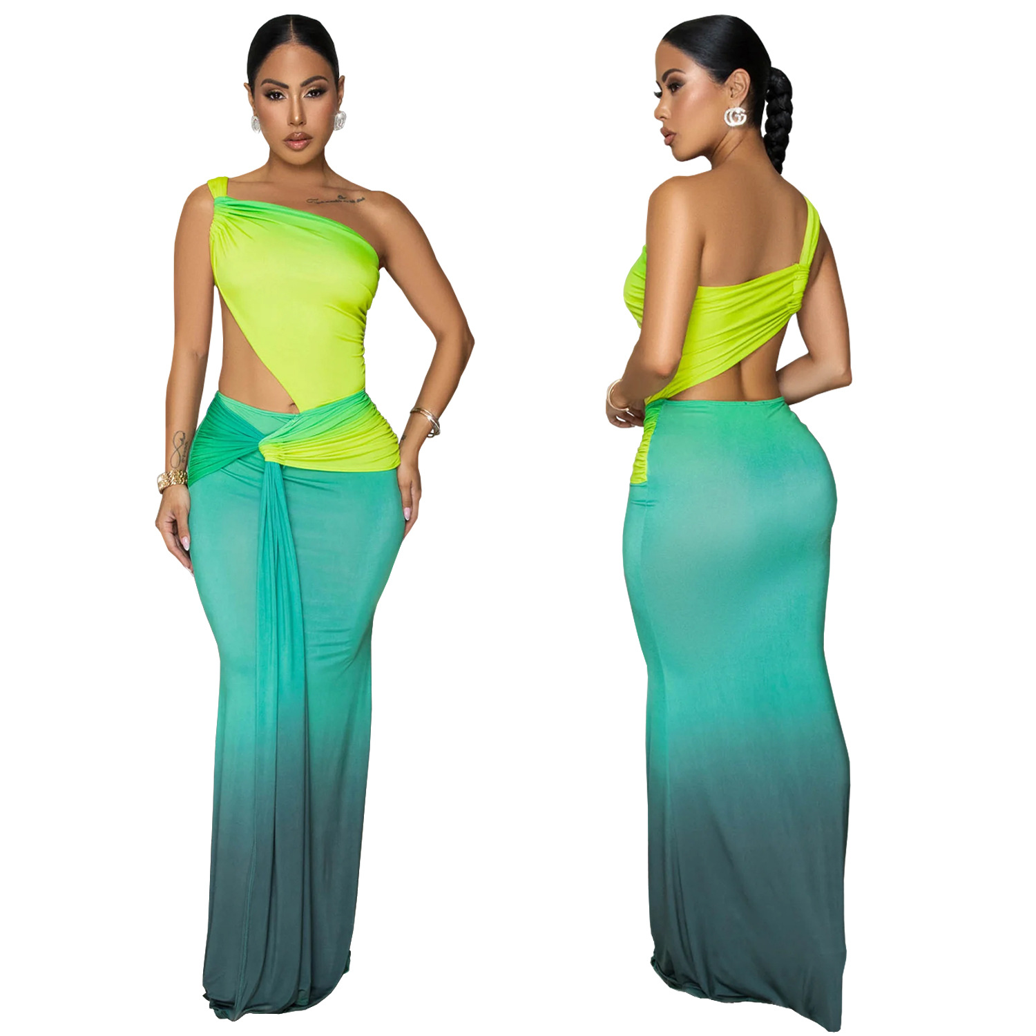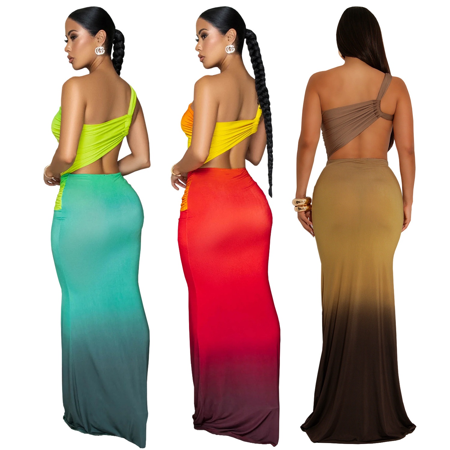 Summer Sexy Cross-shoulder Bag Arm Gradient Dress