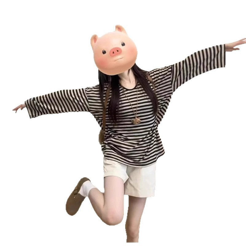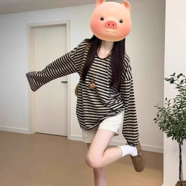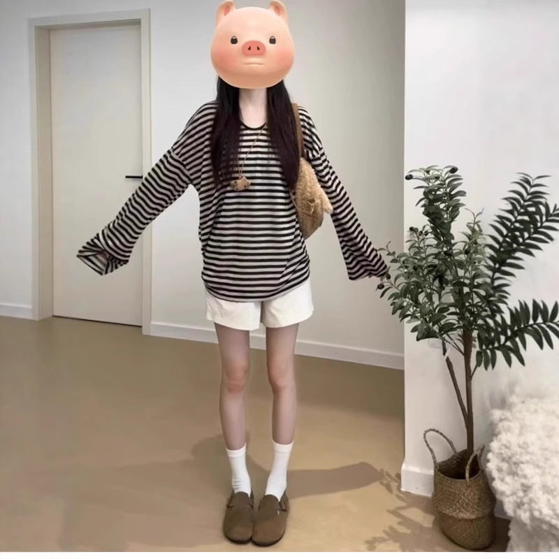 Sun Protection Loose Long Sleeve Women's Striped Mid-length Top