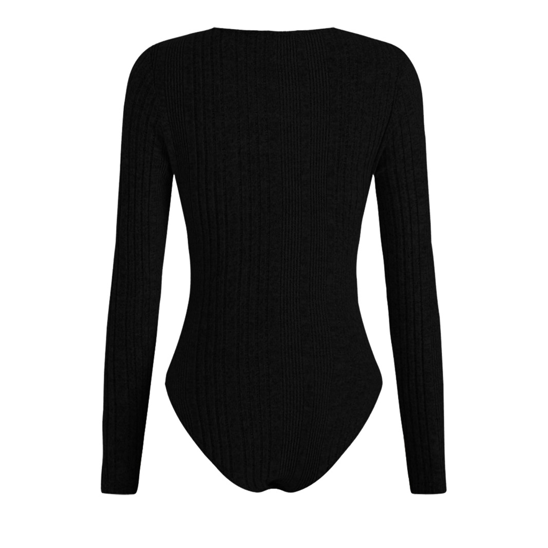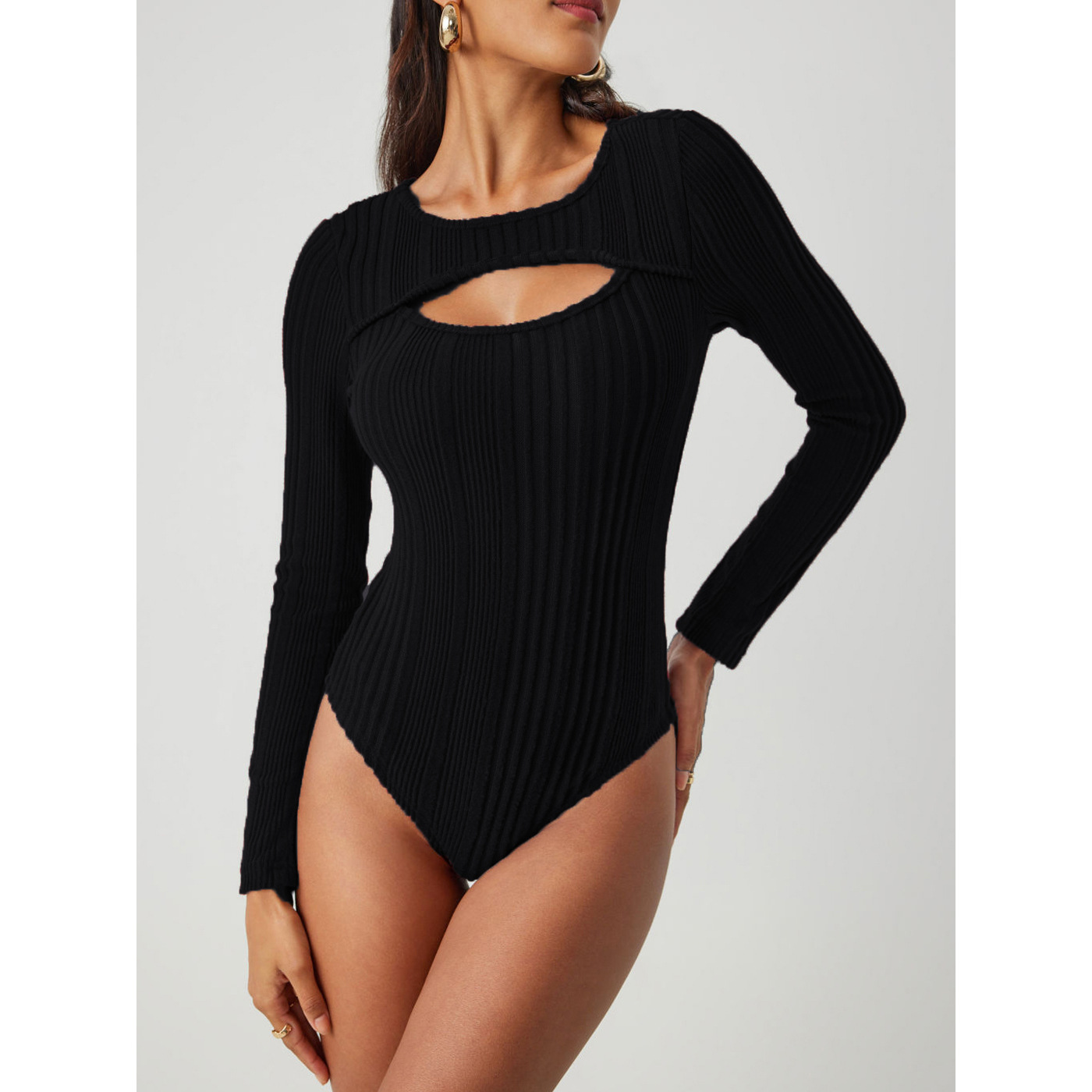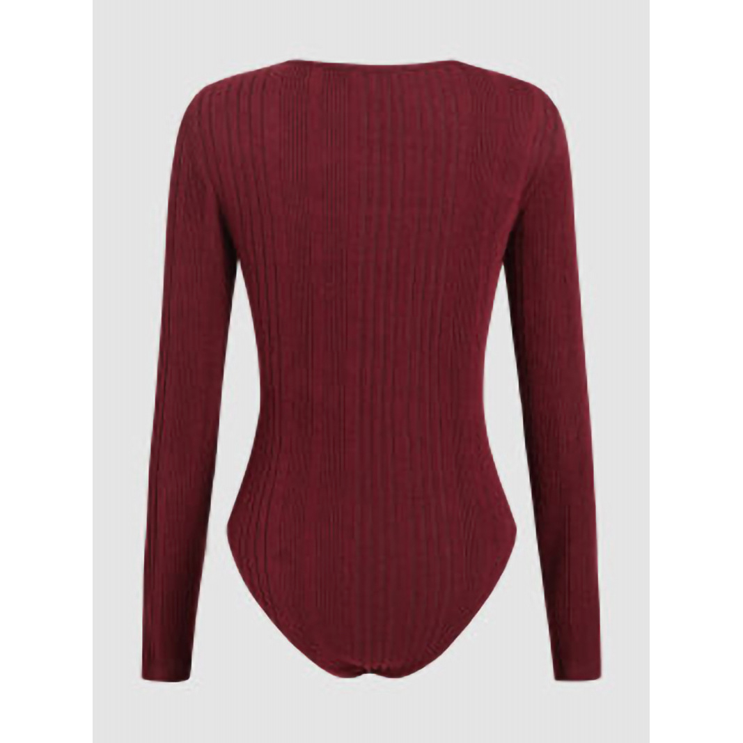 Sunken Stripe Hollow-out Slim-fit One-piece T-shirt Round Neck Long Sleeve Top