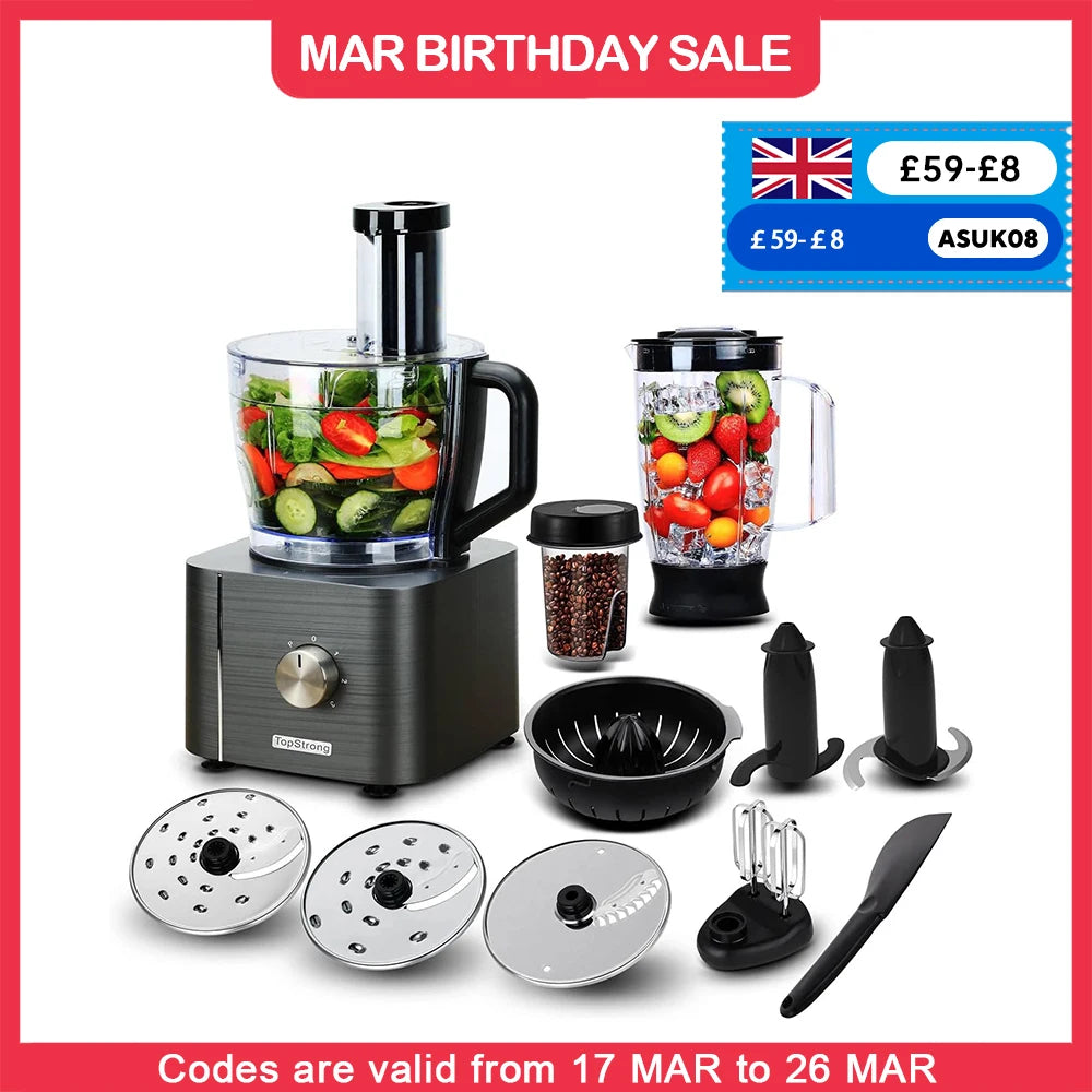 TopStrong 11-in-1 3.2L Bowl 1100W 3 Speeds with Chopping Blending Kneading Grinding Whisking Juicing Food Processor blender