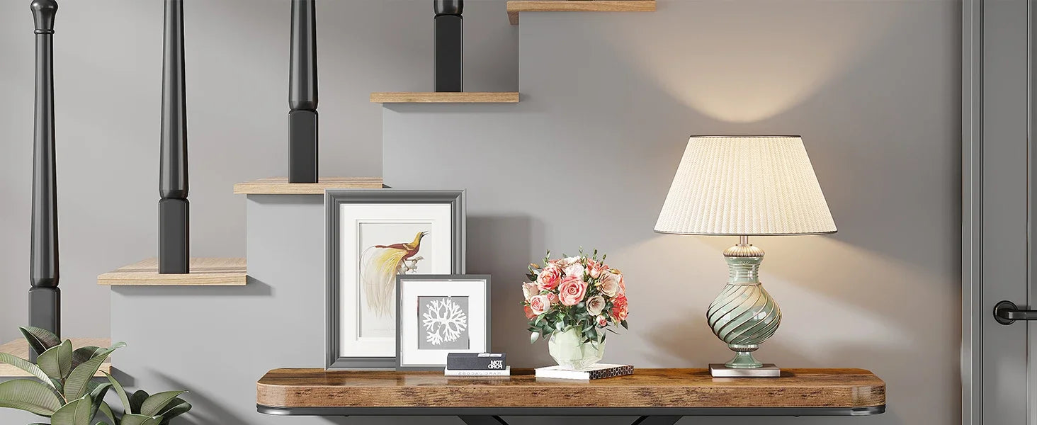 Tribesigns Industrial Console Table, 40 inch Narrow Entryway Foyer Table with Geometric Base, Rustic Hallway Accent Table
