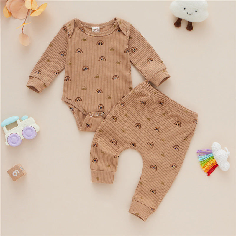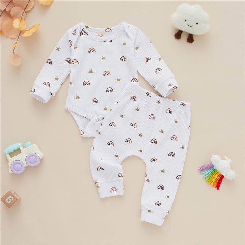 Two-piece Baby Cotton Romper Trousers With Rainbow Pattern