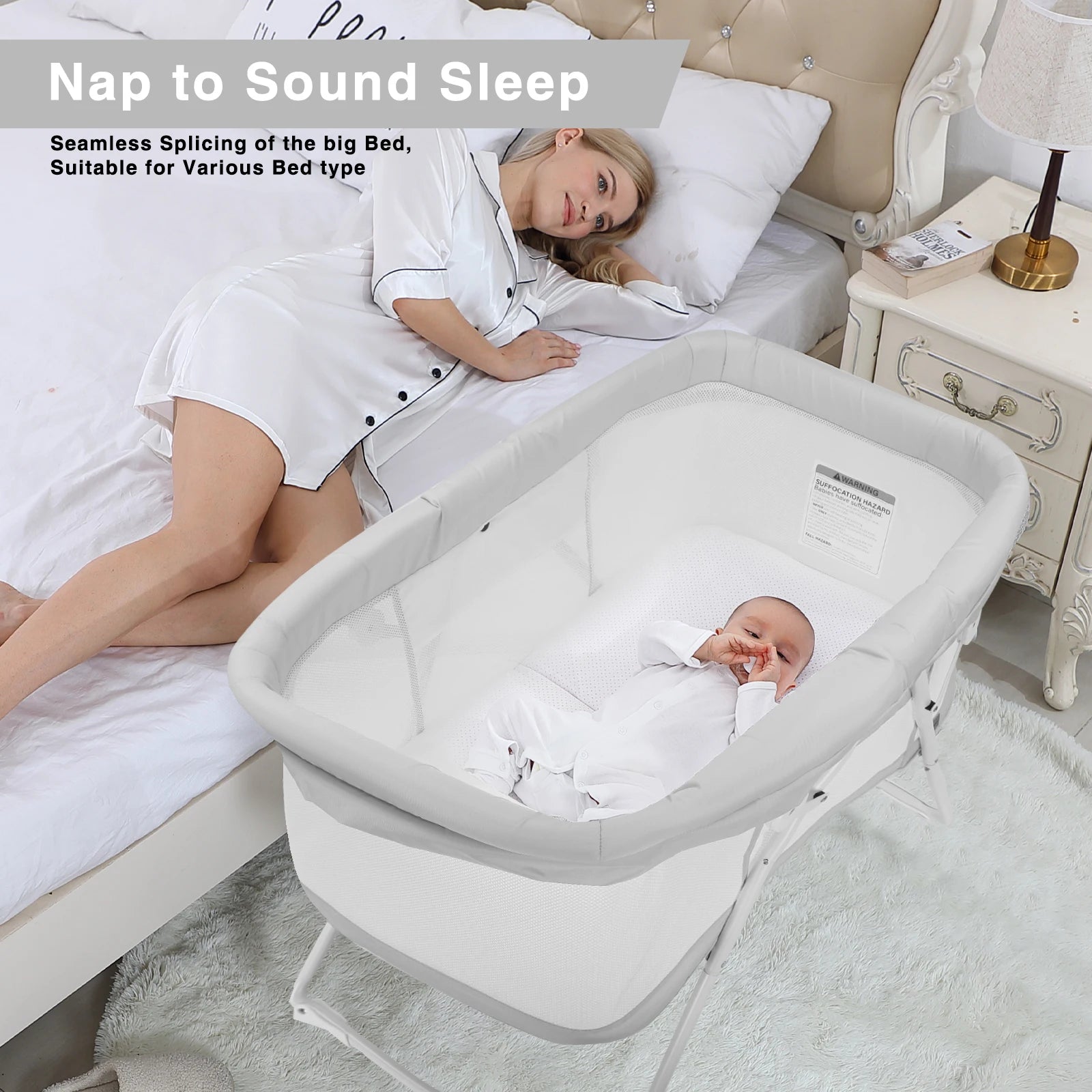 UBRAVOO Baby 2 in 1 Cribs and Cradles, Easy Folding Travel Cot with Mattress Multifunction Bedside Rocking for Newborn
