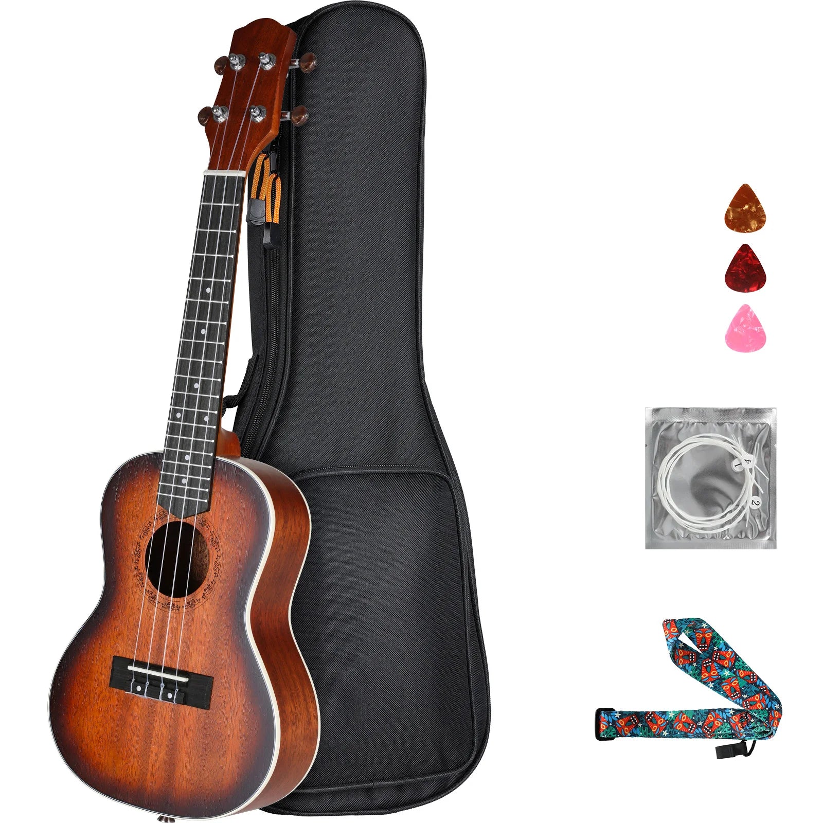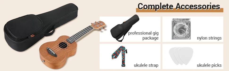Body is handmade from satin African mahoganyThe bridge is made of bone nuts, is strong and durableThe design of the back is curved, the sound is fullerThe strings are polished and rounded to protect the fingersProfessional high-performance bag with large capacity, easy to carrySurprise gift for music lovers