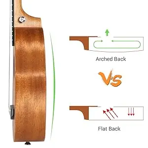 Arched back designThe curved back focuses on the projection of sound, increases the resonant frequency and sustain, the sound is deeper and softer. |