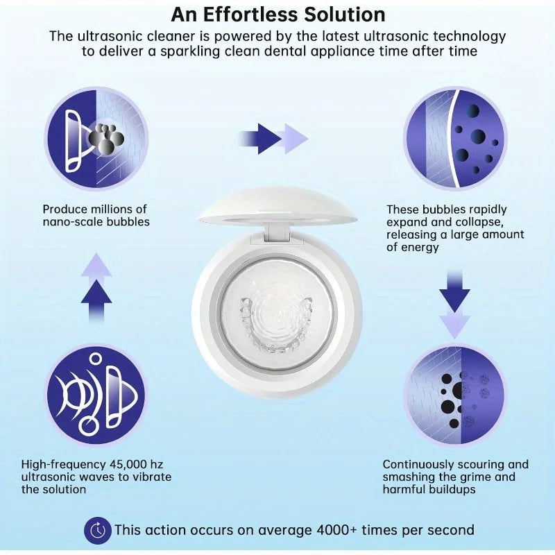 Ultrasonic Retainer Cleaner Dentures Cleaning Machine for Aligner, Mouth Guard, Whitening Trays, Toothbrush Head, Designed to Cl