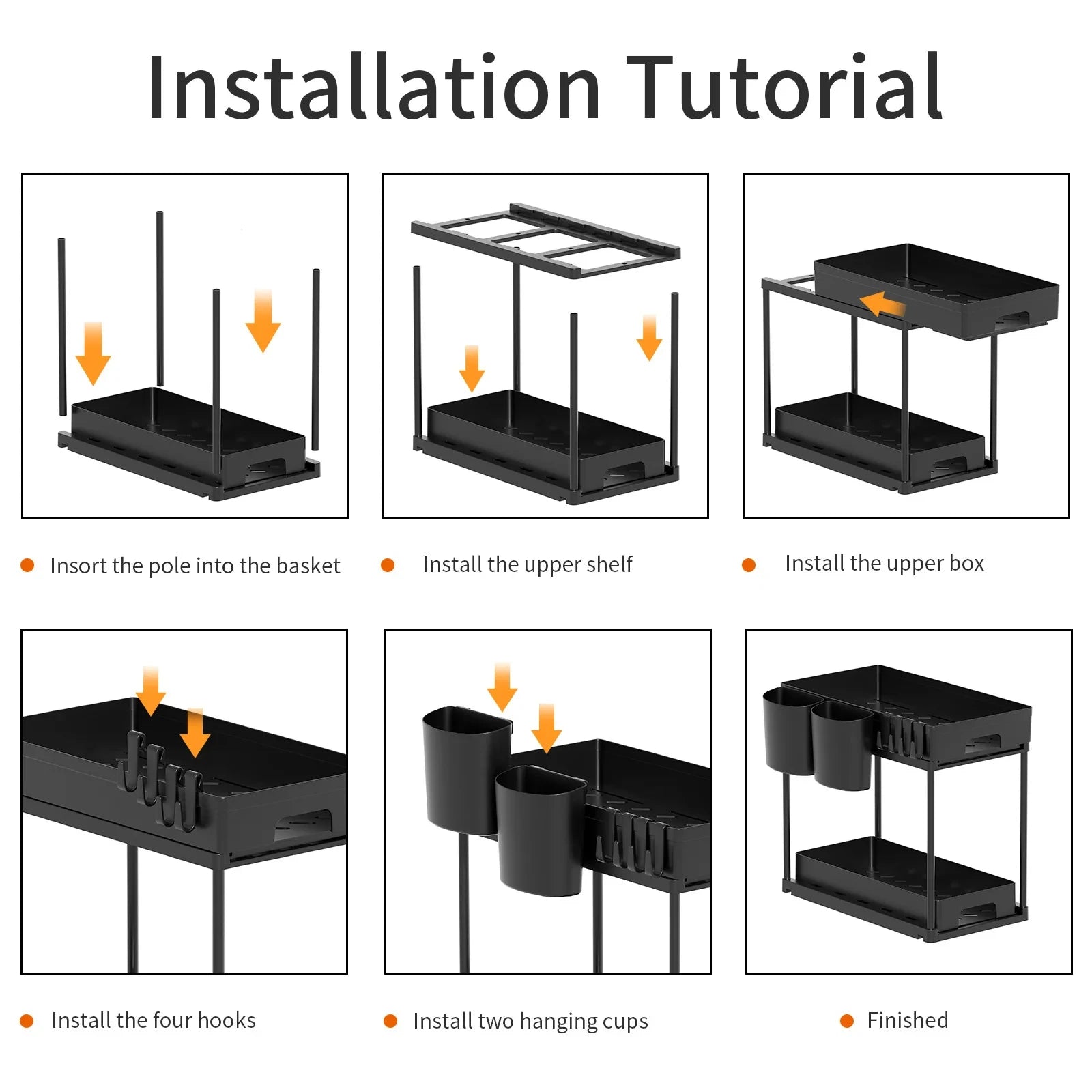 Under Sink Organizer And Storage, 2 Pack Pull Out Cabinet Organizer Slide Out Sink Shelf Cabinet Storage Shelves
