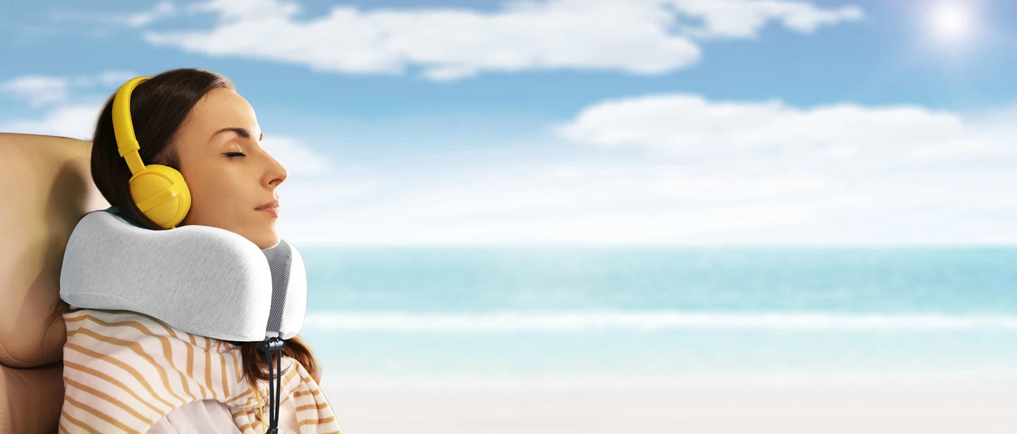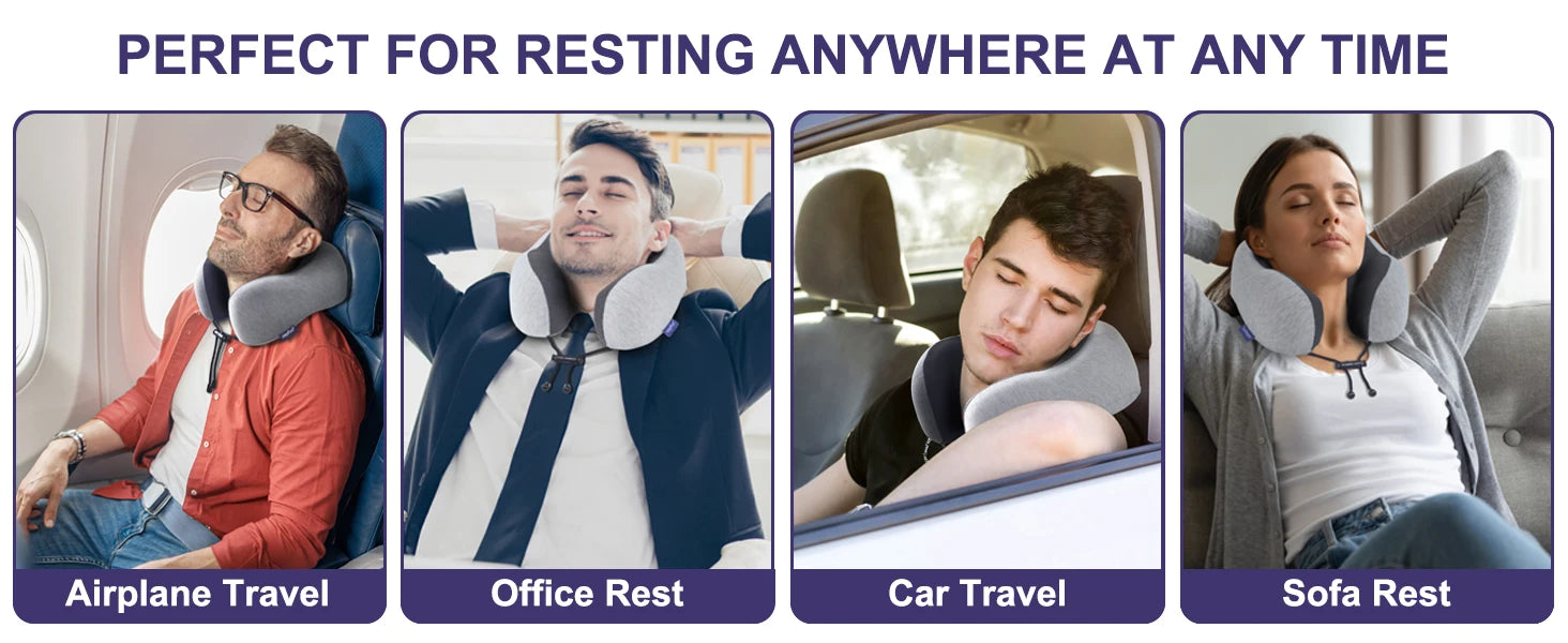 Upgraded Travel Neck Pillow for Airplane 100% Pure Memory Foam Travel Pillow for Flight Headrest Sleep Light Grey