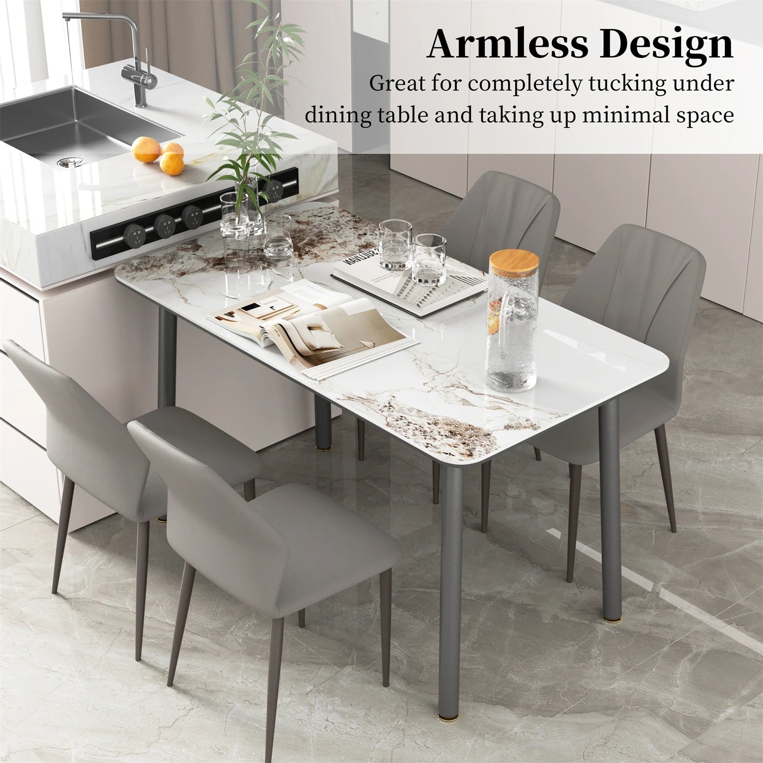 Upholstered PU Leather Dining Chair Set of 2 Kitchen High Back Armless Side Dinner Chairs for Living Room, Kitchen