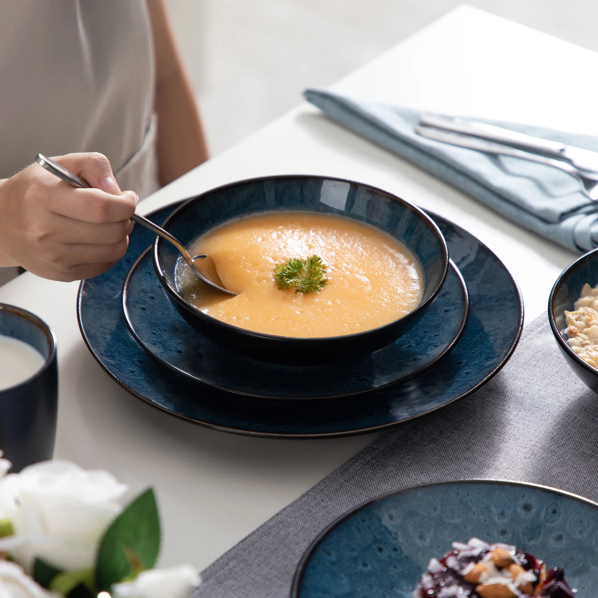 VANCASSO BUBBLE 16/32/48-Piece Tableware Set Vintage Ceramic Blue/Brown Stoneware Set with Dinner&Dessert Plate,Bowl,Coffee Cups