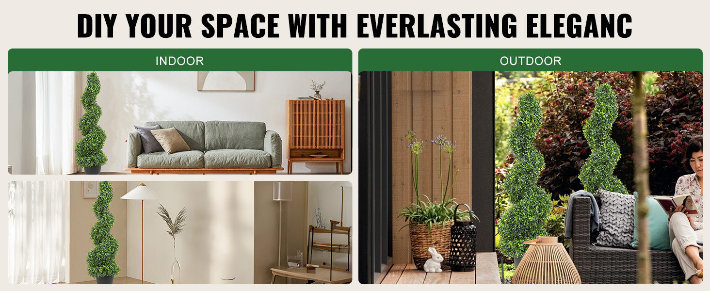 VEVOR 1/2pcs Artificial Boxwood Tower Topiary Spiral Artificial Plant 24/36/48in high Decorative Plants Green Plastic PE Tree