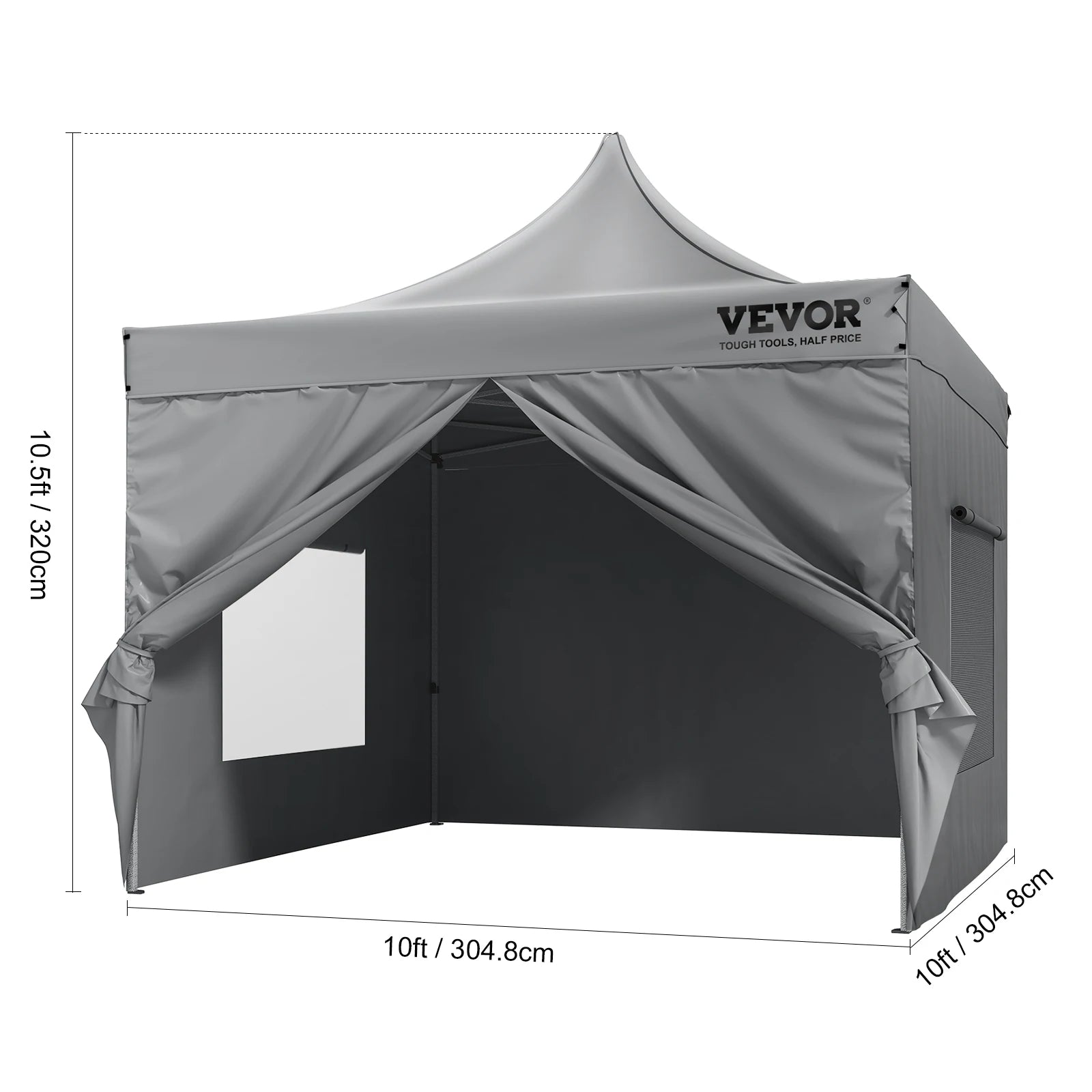 VEVOR 10x10 FT Pop up Canopy with Removable Sidewalls Portable Gazebo & Wheeled Bag UV Resistant Waterproof Tent for Patio