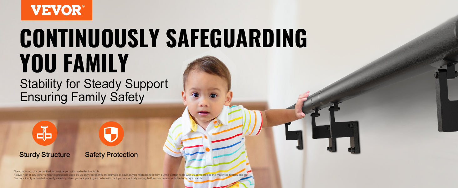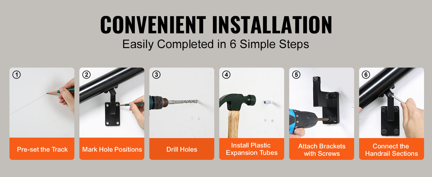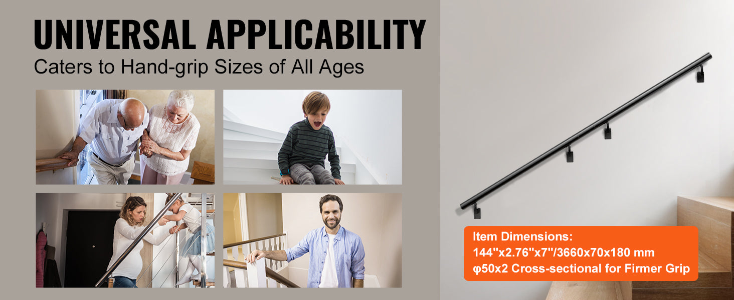 VEVOR 4/5/7/12 ft Handrail Stair Railing 440 LBS Wall Mount Stairway Hand Rail with Installation Kit for Indoor Outdoor Stairs