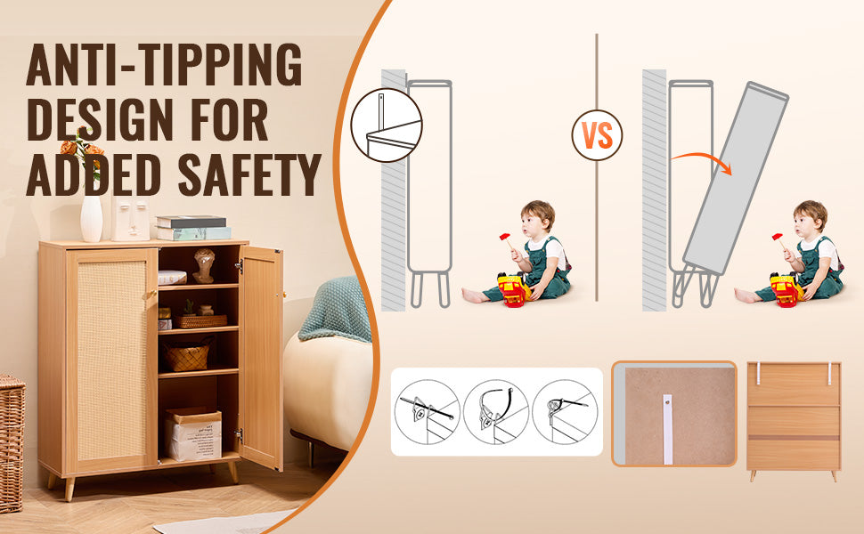 VEVOR 5 Tiers 2 Doors 40.35" Tall and Adjustable Shelves Rattan Shoe Storage Entryway Cabinet Ideal for Entryway Closet Hallway