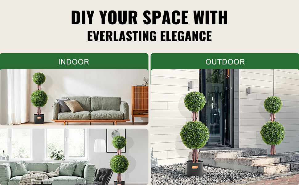 VEVOR Artificial Boxwood Topiary Tree Faux Plant w/ Extra Leaves Pot Small Decoration UV Rated Set for Home Decor Indoor Outdoor