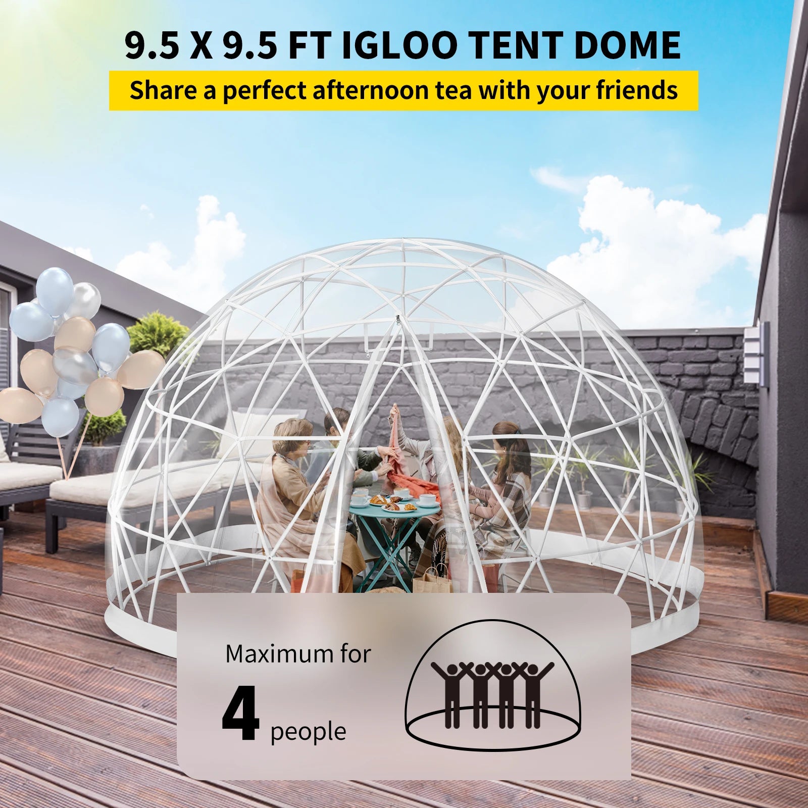 VEVOR Bubble Tent Garden Igloo 9.5/12ft With LED PVC Cover Geodesic Greenhouse Dome for Outdoor Sunbubble Backyard Bubble House