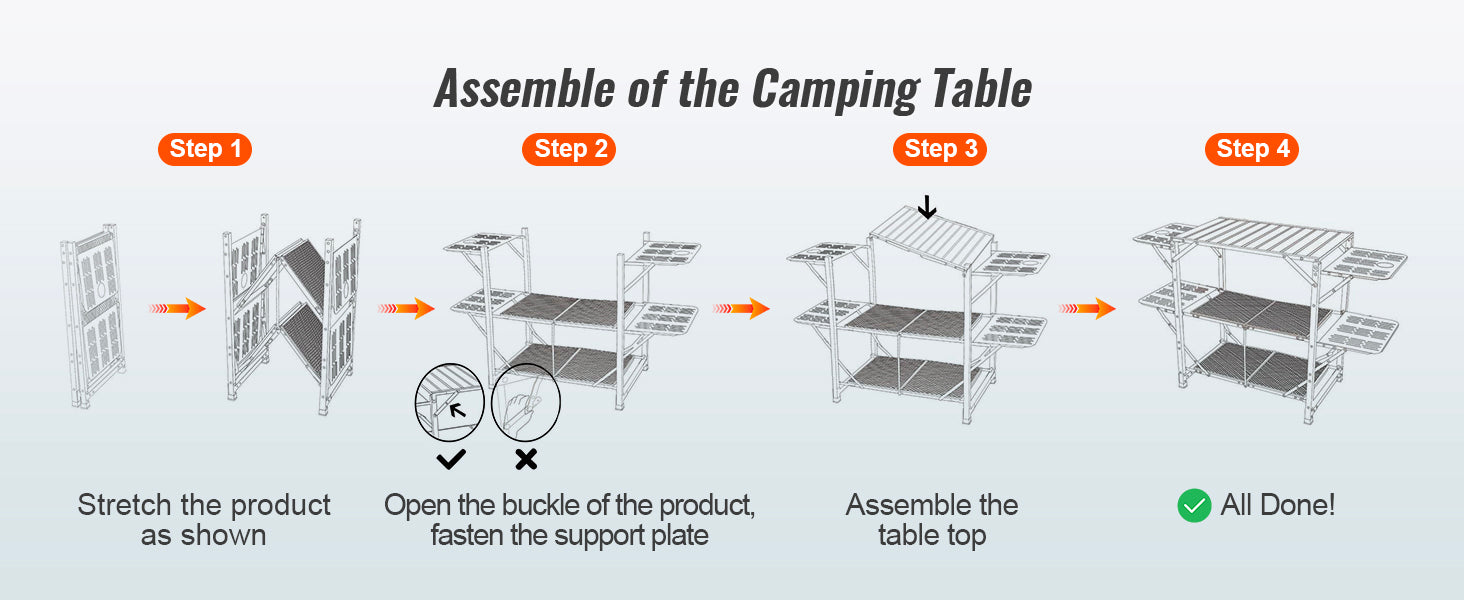 VEVOR Camping Kitchen Table One-piece Folding Portable Cook Station Aluminum Camping Folding Table for Outdoor Picnics BBQ
