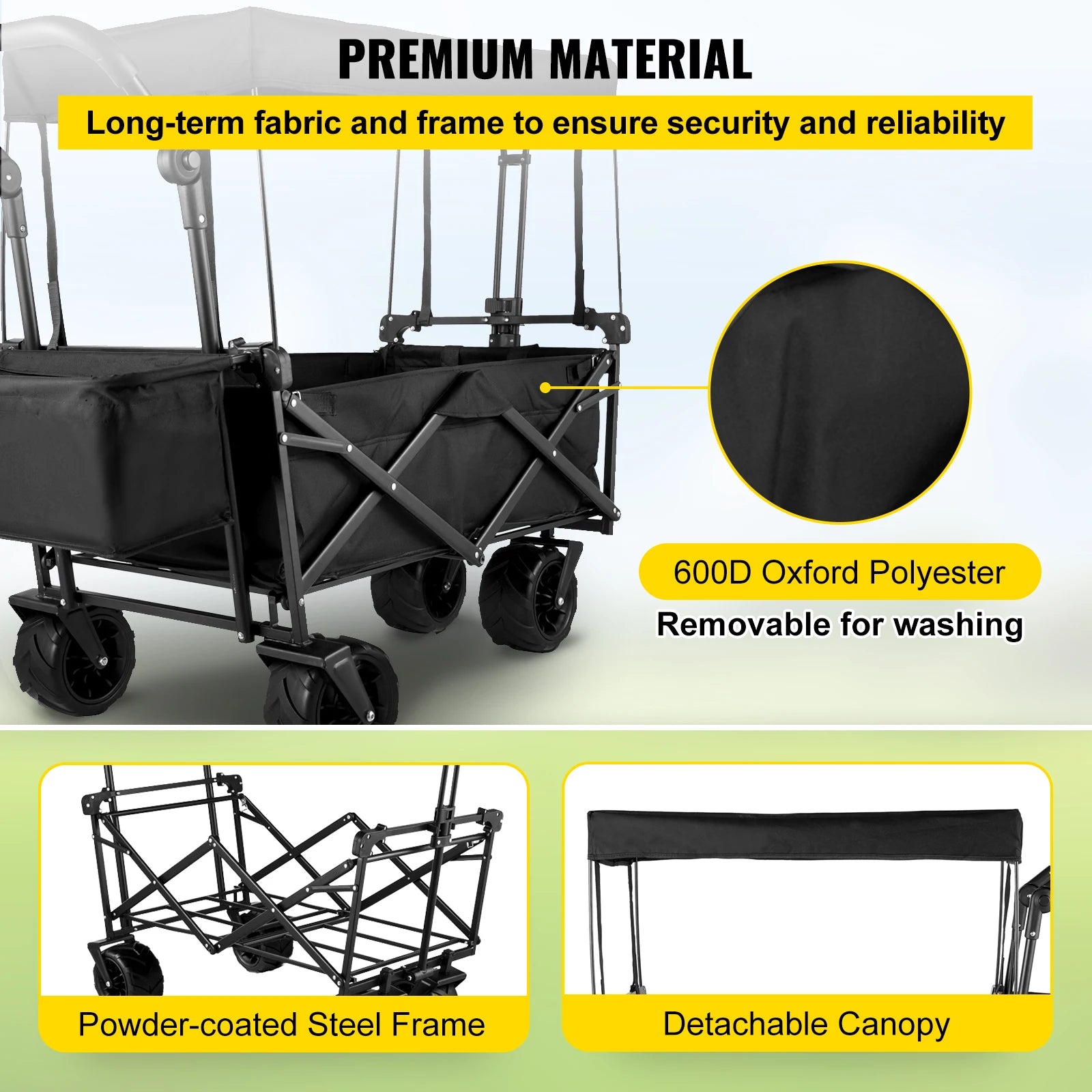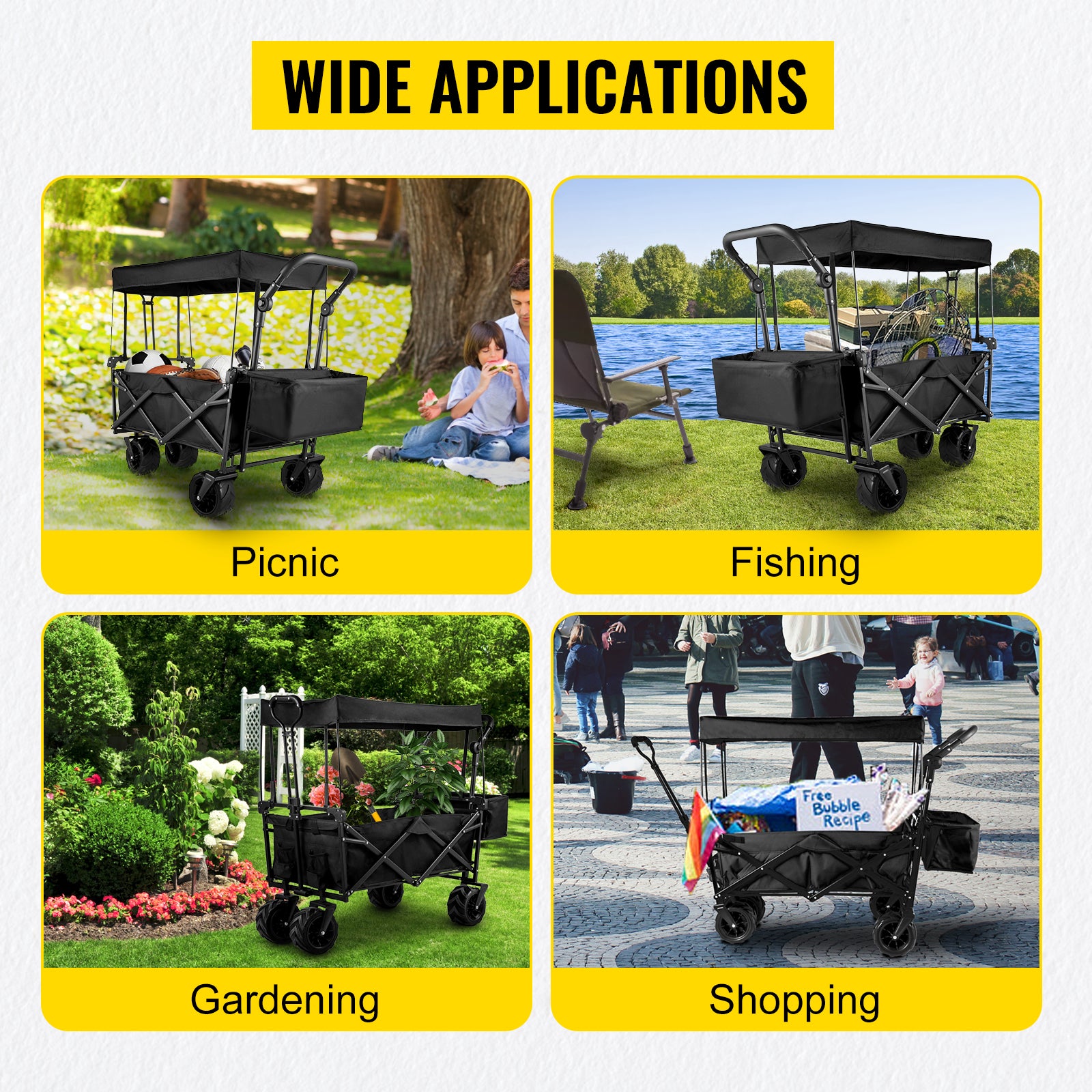 VEVOR Folding Wagon Cart W/ Adjustable Handle Bar Removable Canopy Oxford Cloth Collapsible Shopping Outdoor Camping Beach Cart