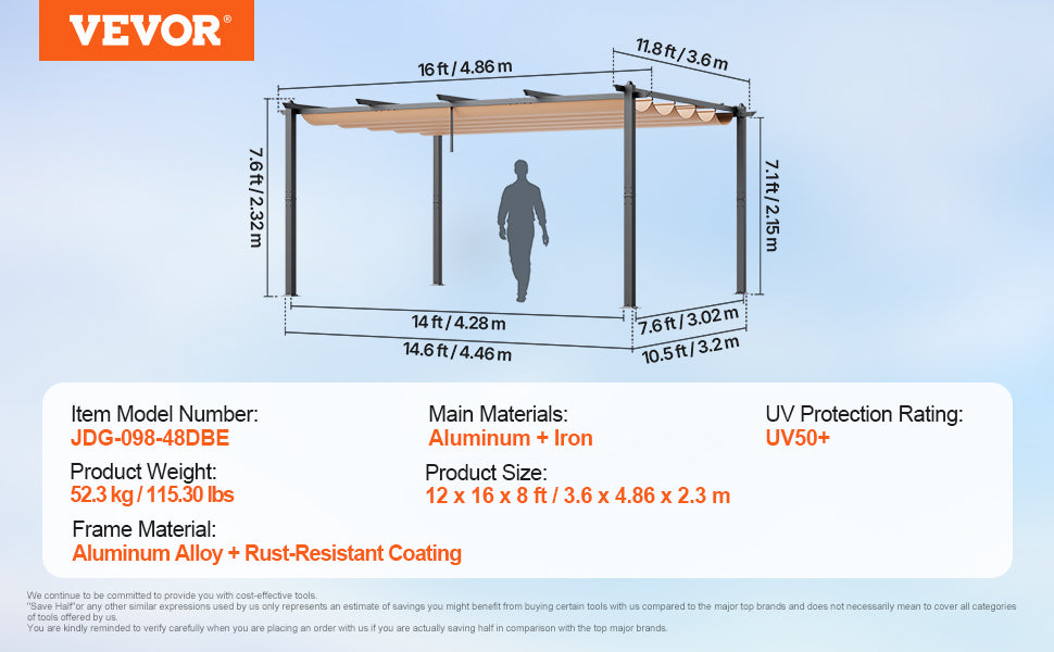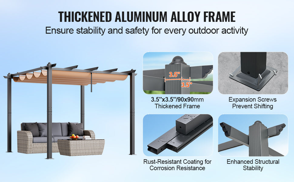 VEVOR Outdoor Retractable Pergola with Canopy Aluminum Pergola with Canopy Modern Pergola with Sun Shade Canopy for Patios