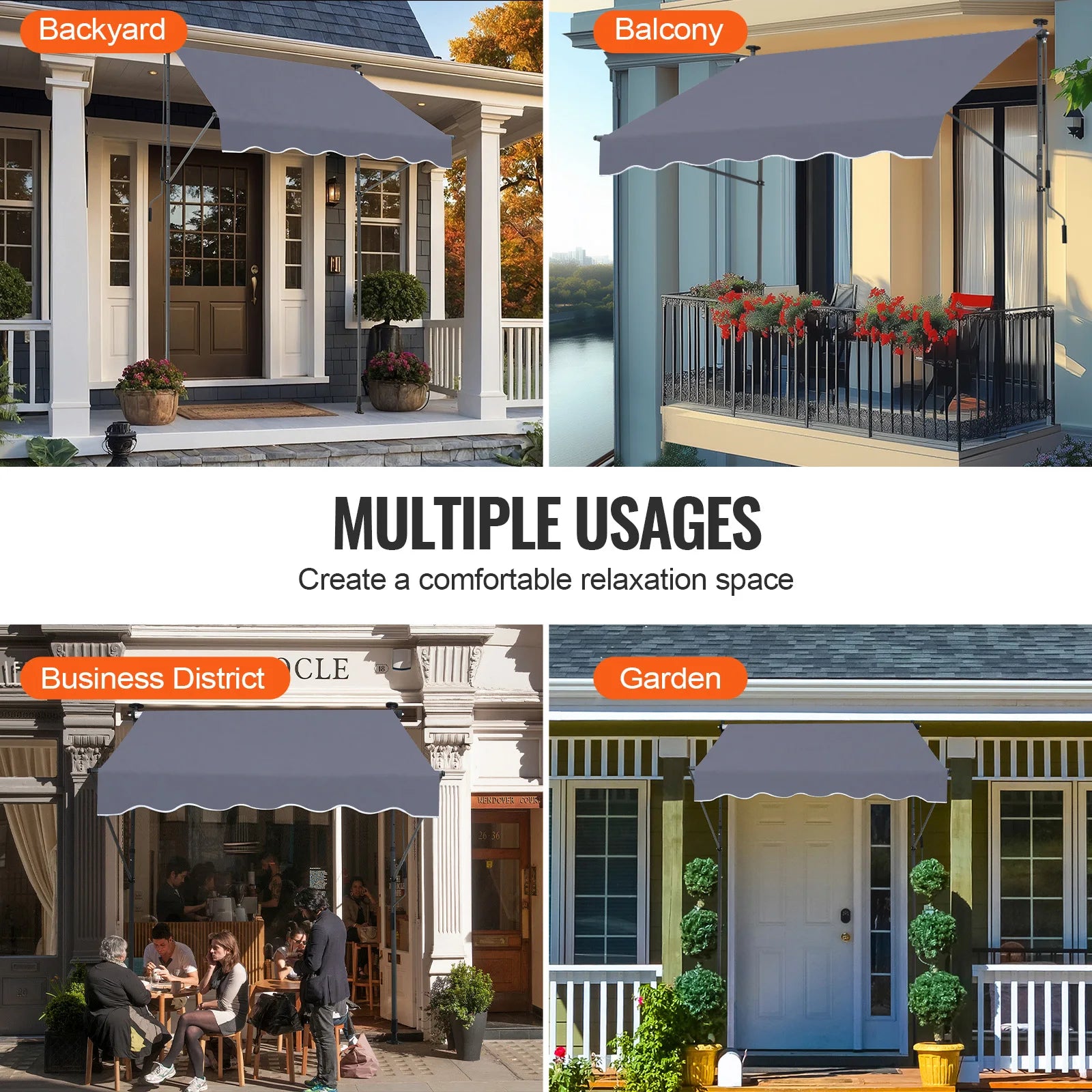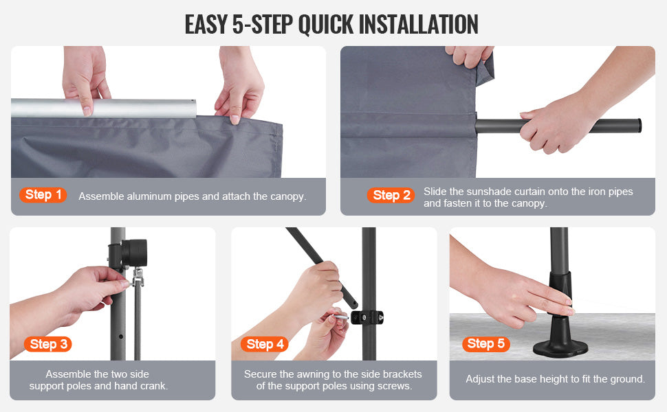 VEVOR Patio Awning Retractable Awning Sunshade Shelter with Manual Crank Handle Outdoor Canopy Sunsetter Deck for Balcony Yard