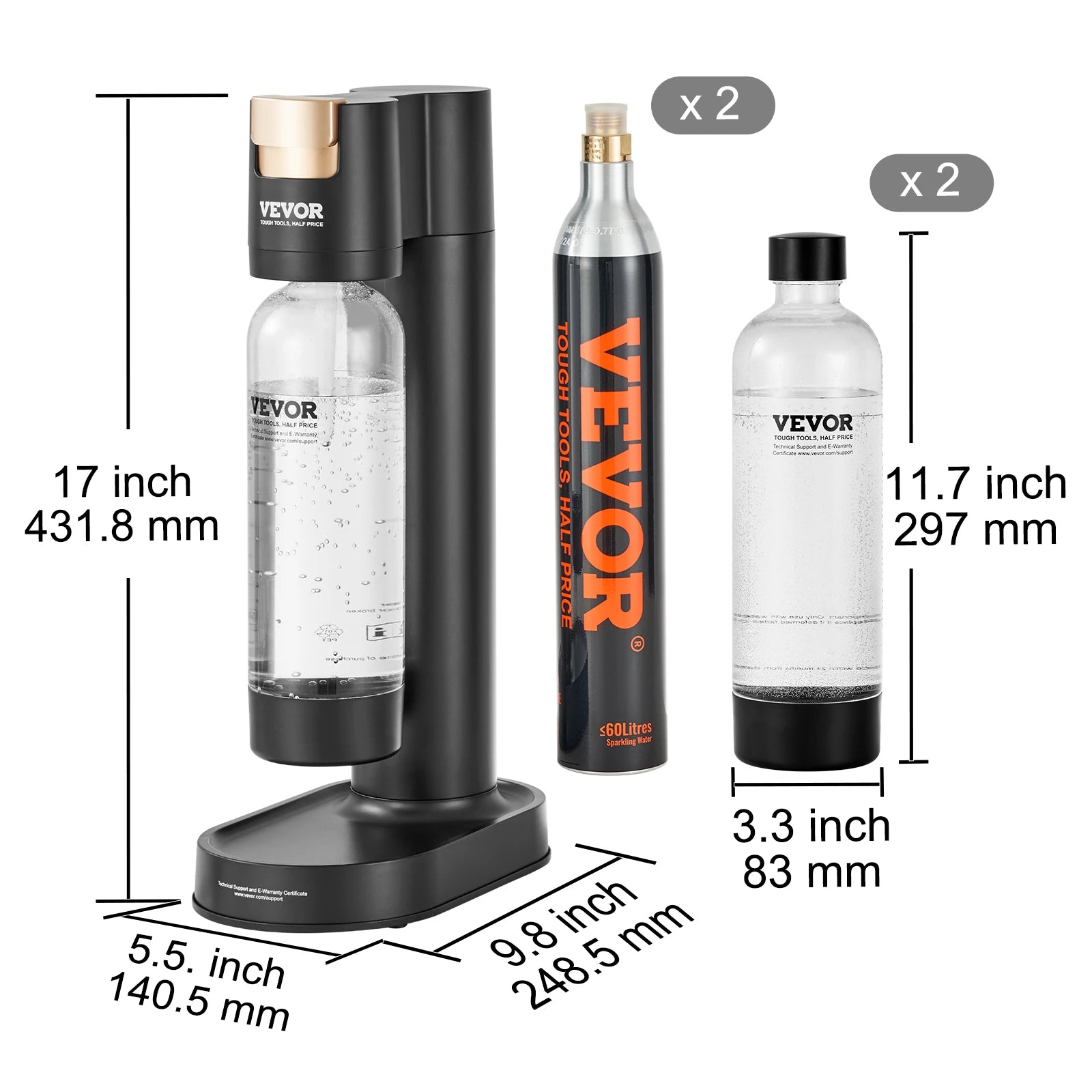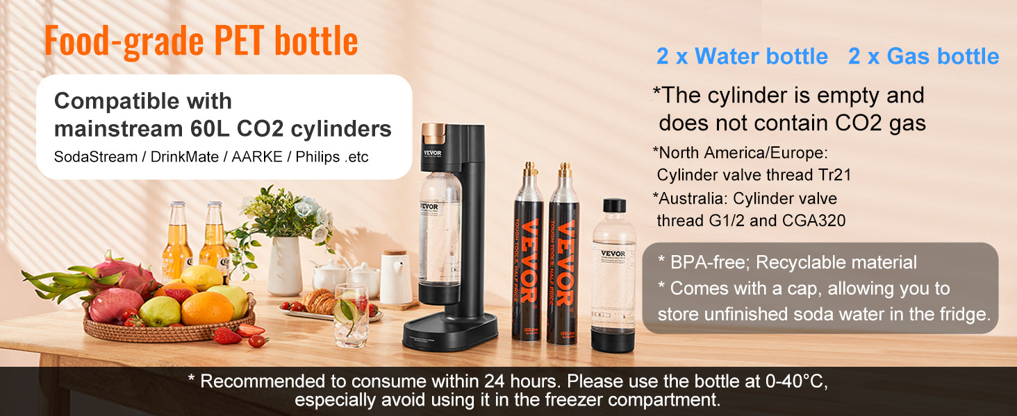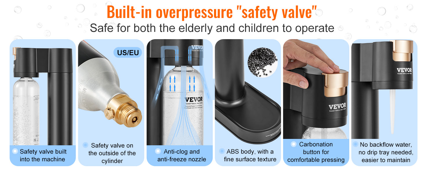 VEVOR Sparkling Water Maker Soda Machine for Home Carbonating Seltzer Water Starter Kit w/ Mainstream Screw-in 60L CO2 Cylinder