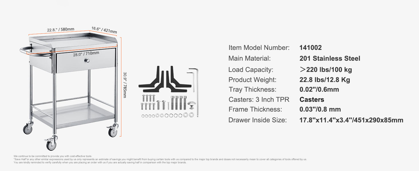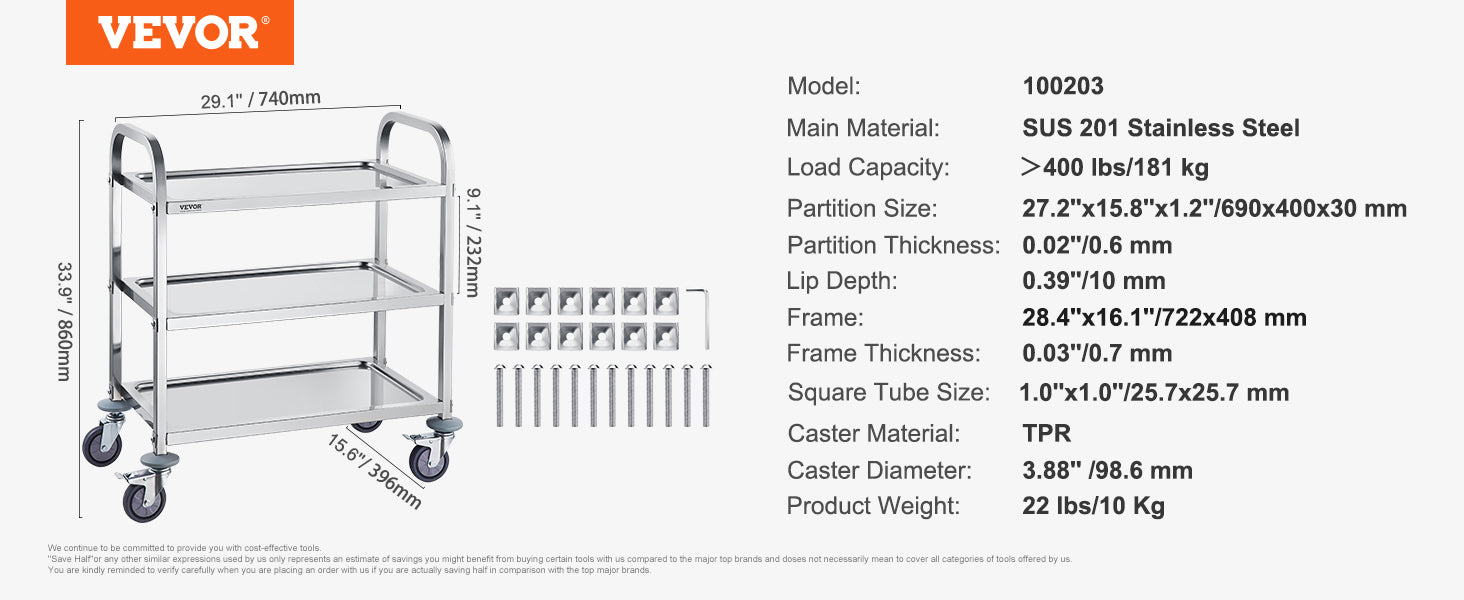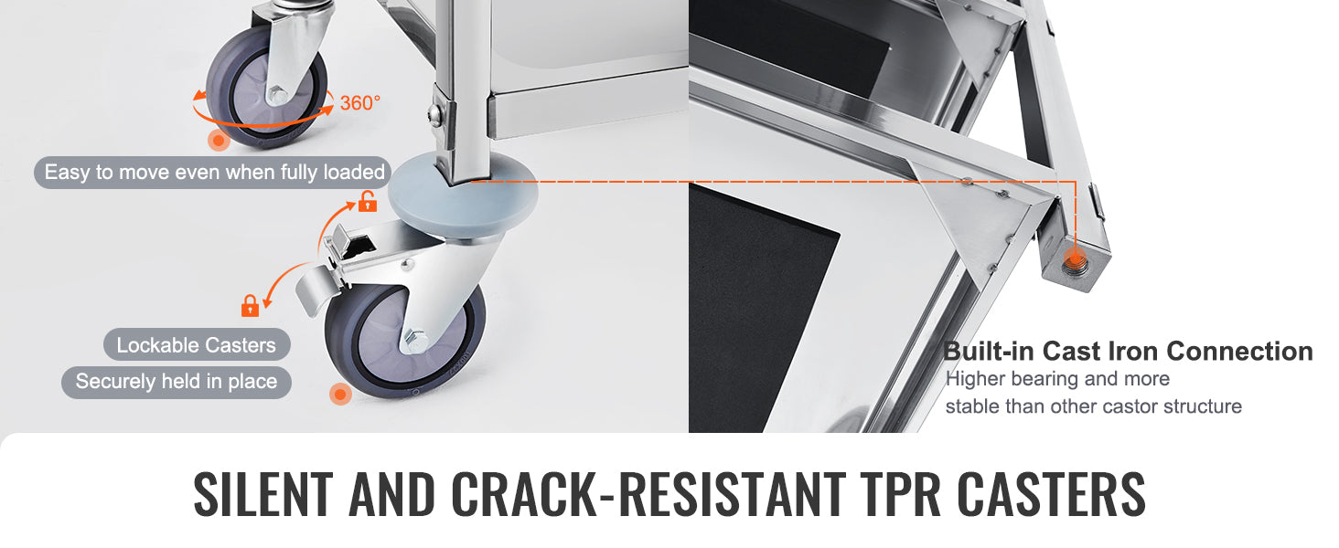 VEVOR Stainless Steel Cart 3/2/1 Layers Lab Utility Cart Medical Cart W/ Lockable Universal Wheels for Lab Clinic Kitchen Salon