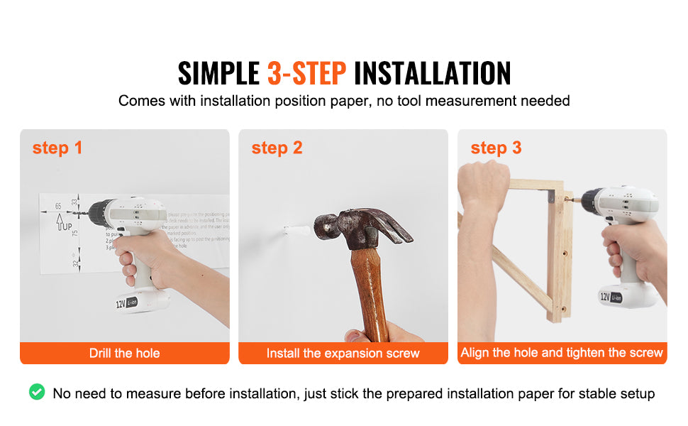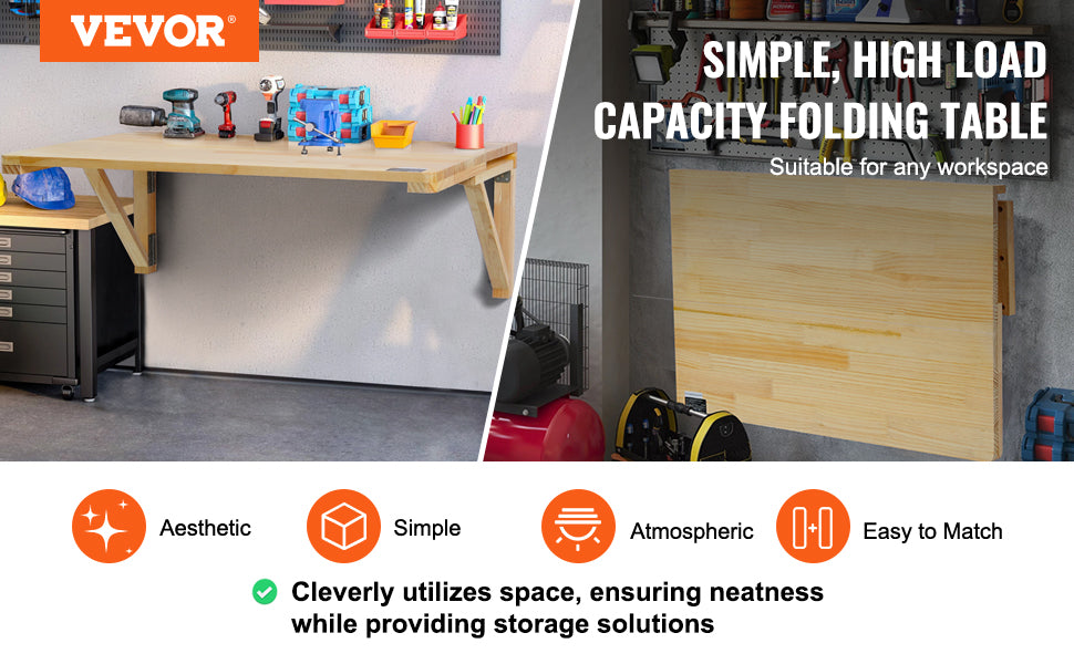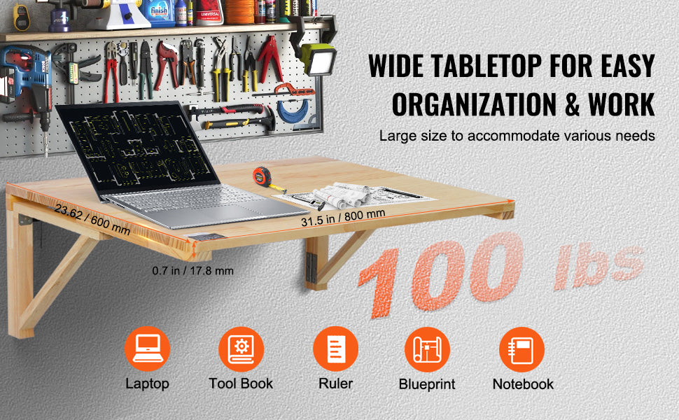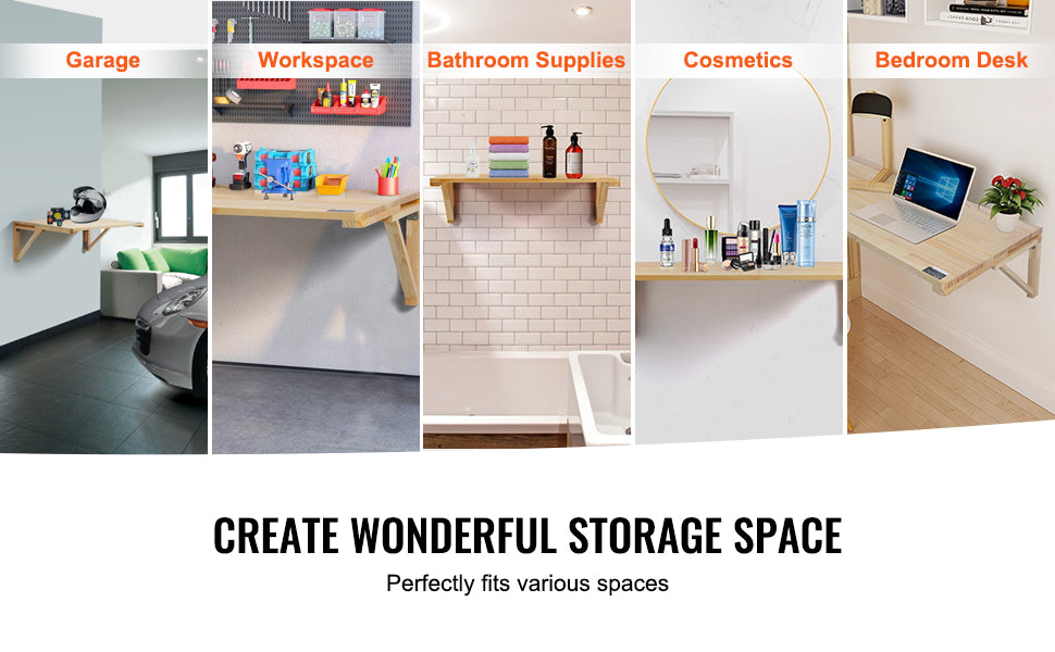 VEVOR Wall Mounted Folding Table Wooden Floating Desk with Iron Bracket Drop Leaf for Home Office Kitchen Bar Space-Saving