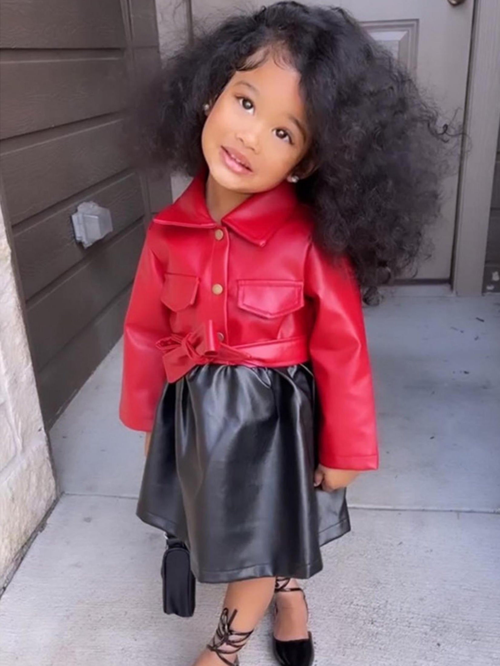 Vibrant Color Block PU Leather Dress for Girls - Stylish Button Lapel Design, Adjustable Belt, and Comfortable Fit for Kids' Everyday Wear