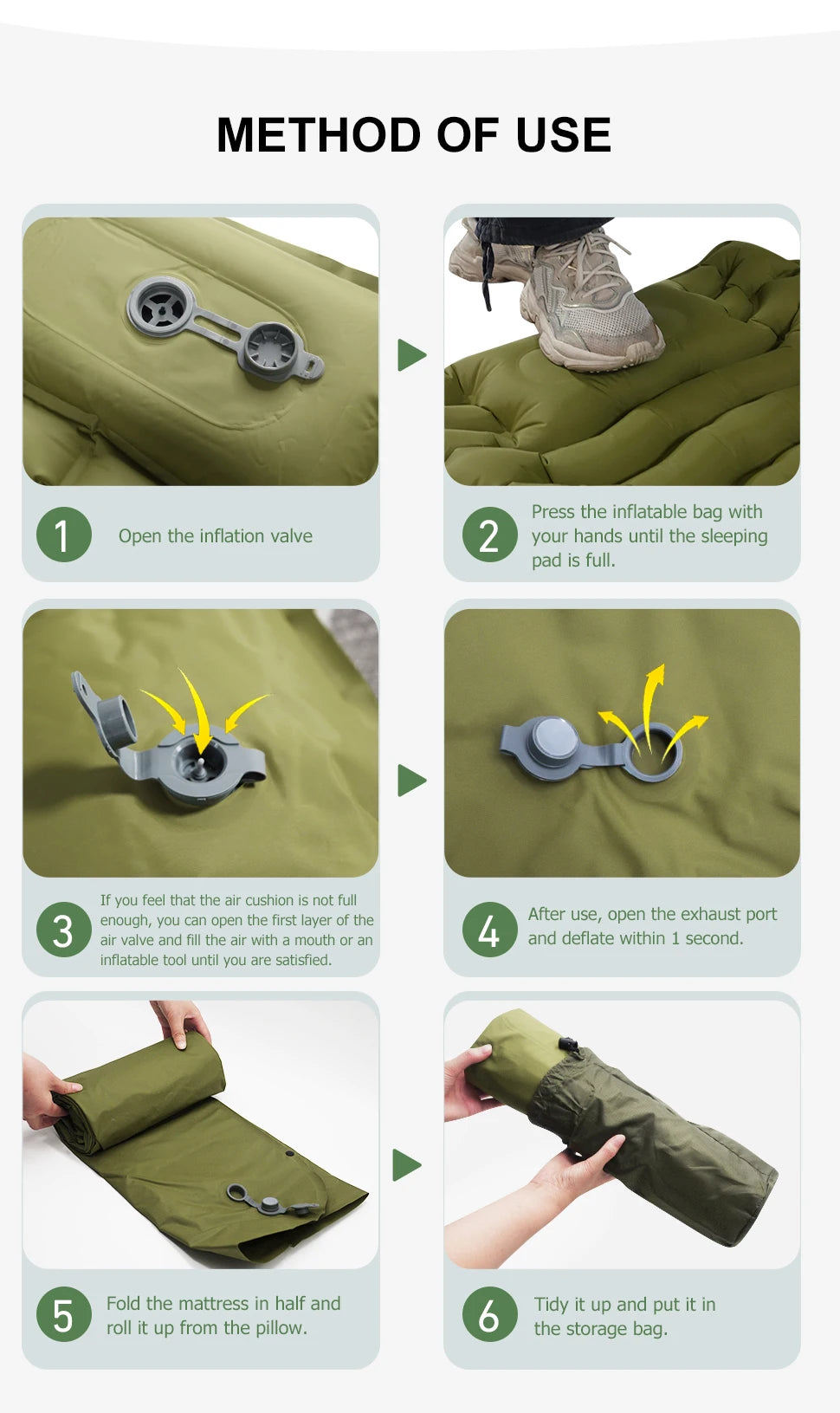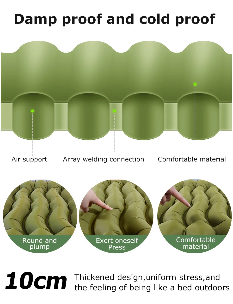 WESTTUNE Outdoor Camping Inflatable Mattress Thicken Sleeping Pad with Built-in Pillow & Pump Air Mat for Travel Hiking Climbing