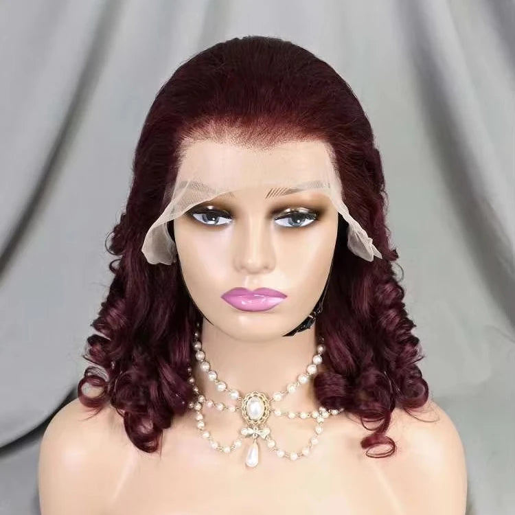 Wholesale 13*4 Full Frontal Lace Spring Curly Brazilian Wig 16 Inch 220% Density 99J Raw Human Hair Wig for Black Women