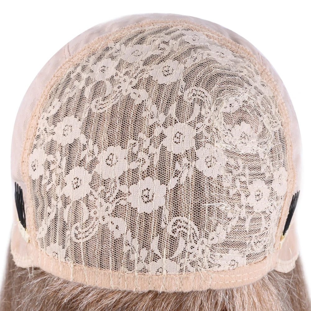 Wholesale 14 Inch Yaki Straight Afro Light Brown Lace Hair Wig Glueless Synthetic Middle Part Women Machine-Made Long Wigs
