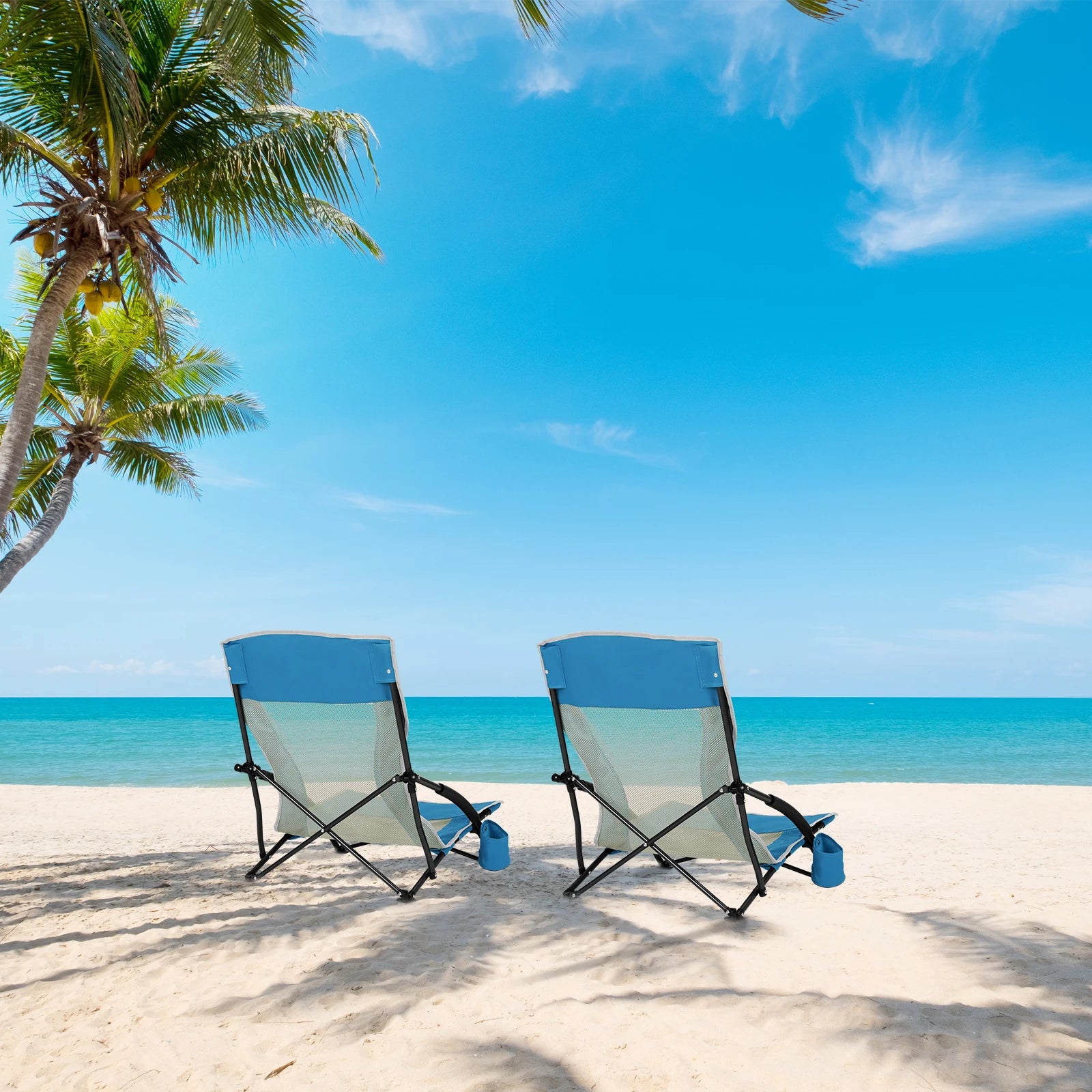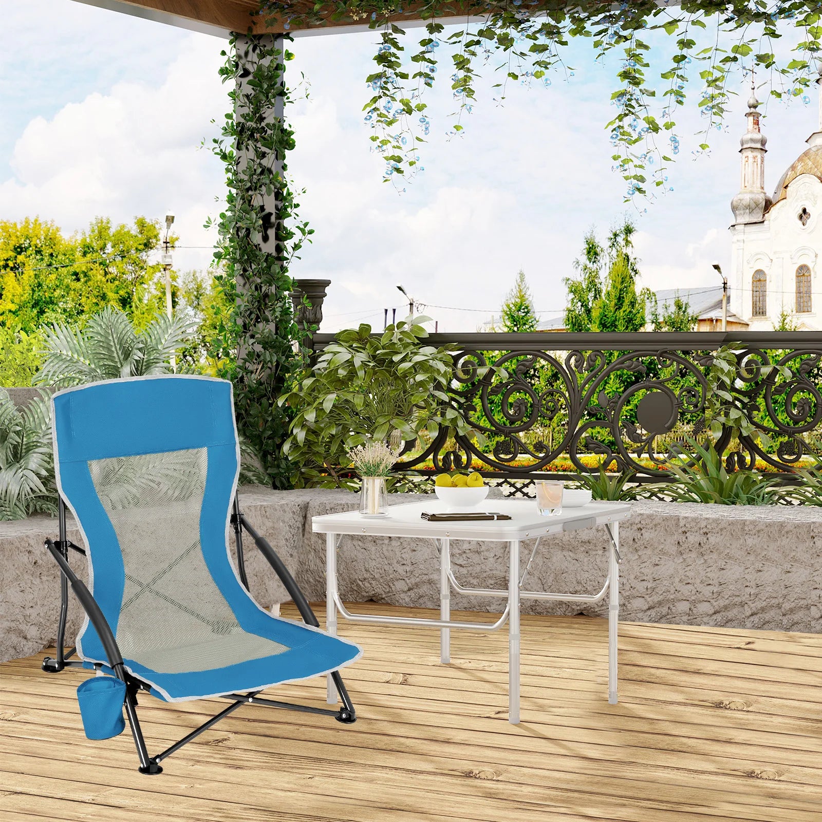 WOLTU Blue Foldable Camping Chair Portable Fishing Chair Beach Lounger Folding Armchair with Mesh Backrest Cup Holder Carry Bag