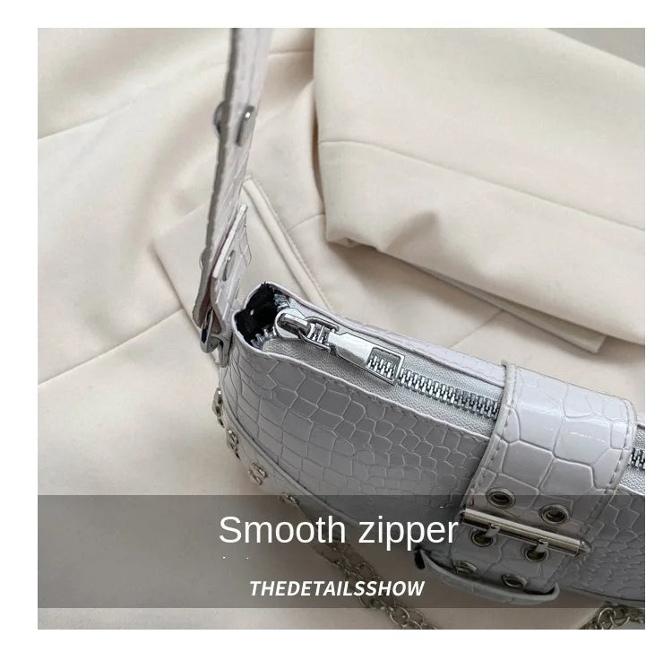 Women Fashion Shoulder Bag Gothic Ladies Bag Cool Style Trendy Rock Girls Handbag Y2K Rivet Chain for Travel Vacation Daily