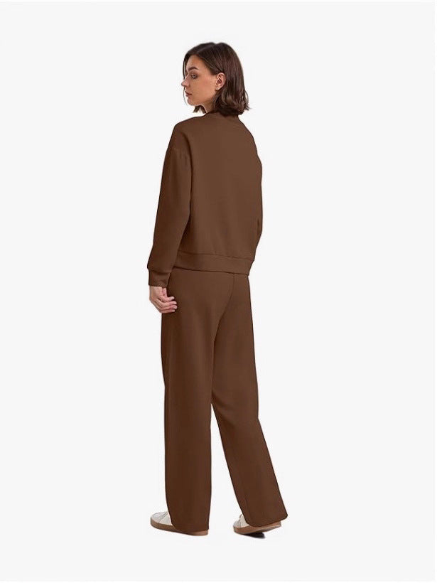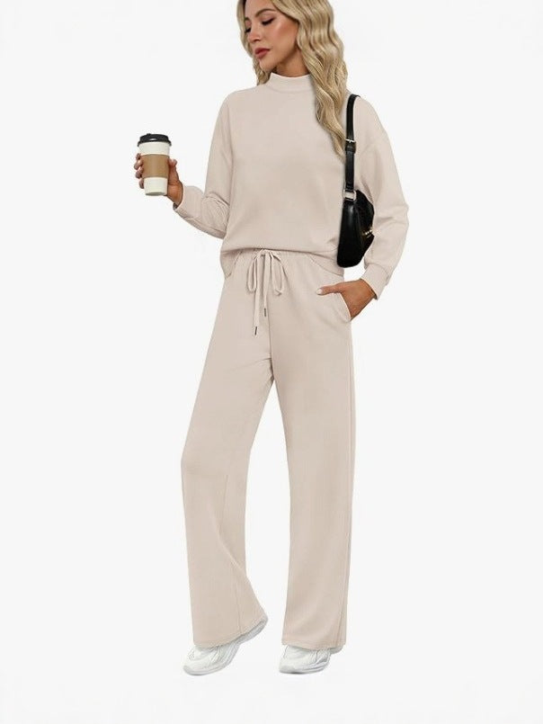 Women's Casual Suit Long-sleeved Wide-leg Pants Two-piece Set