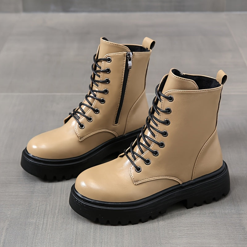 Women's Chunky Platform Round-Toe Ankle Boots with Thick TPR Sole & Faux Upper - Chunky Heel (1-2cm) Round Toe s, Black Faux & TPR Outsole for Casual, Office, Party - Round-Toe Booties
