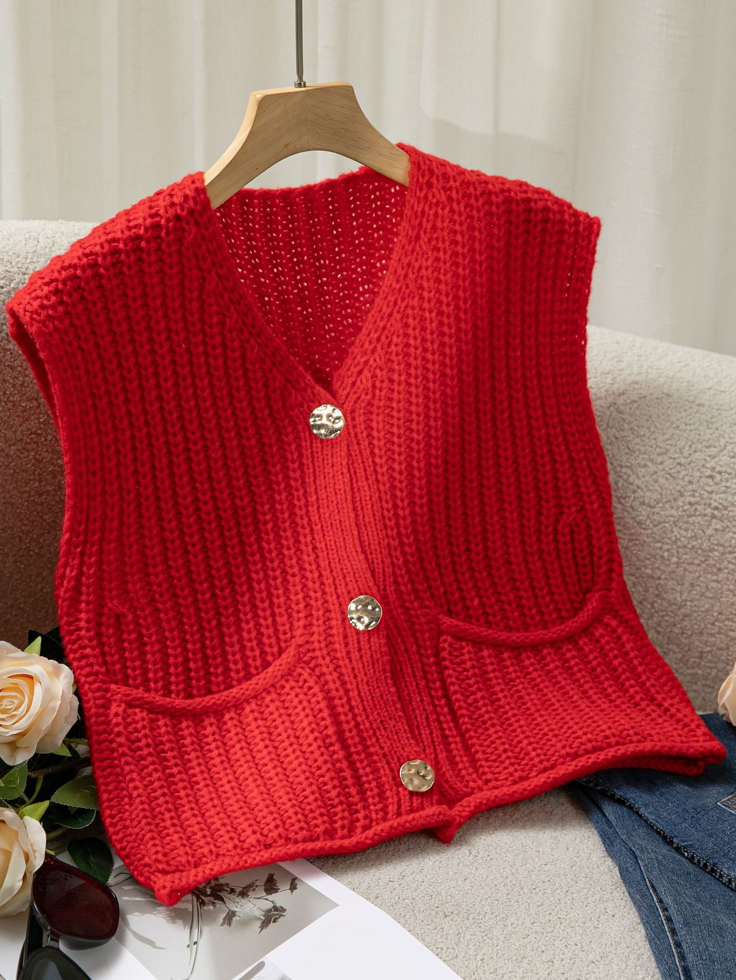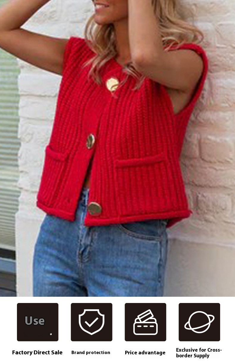Women's European And American Thick Needle Knitted Waistcoat